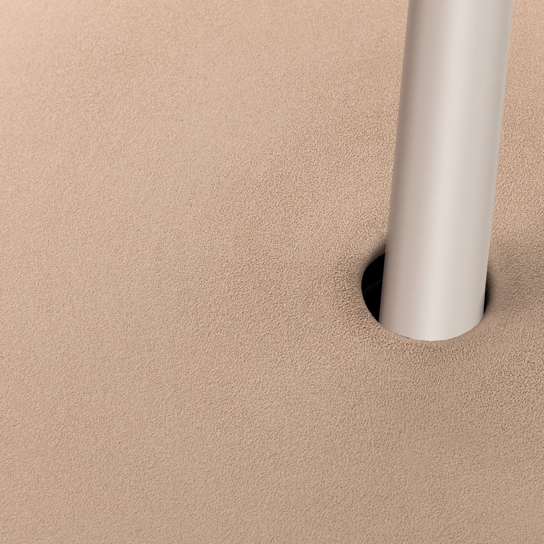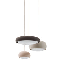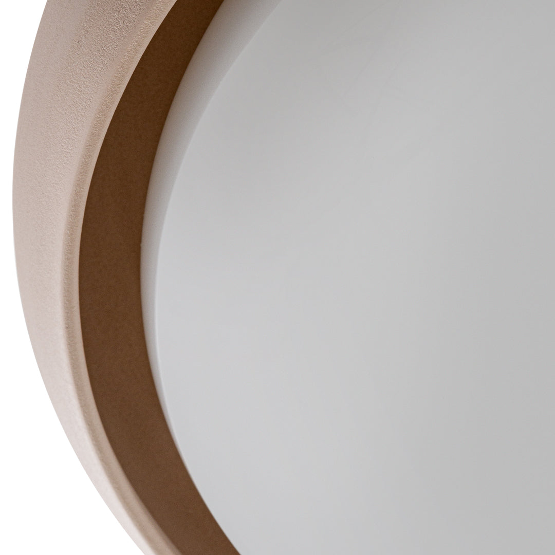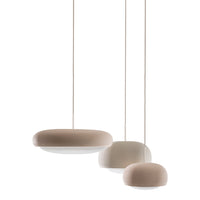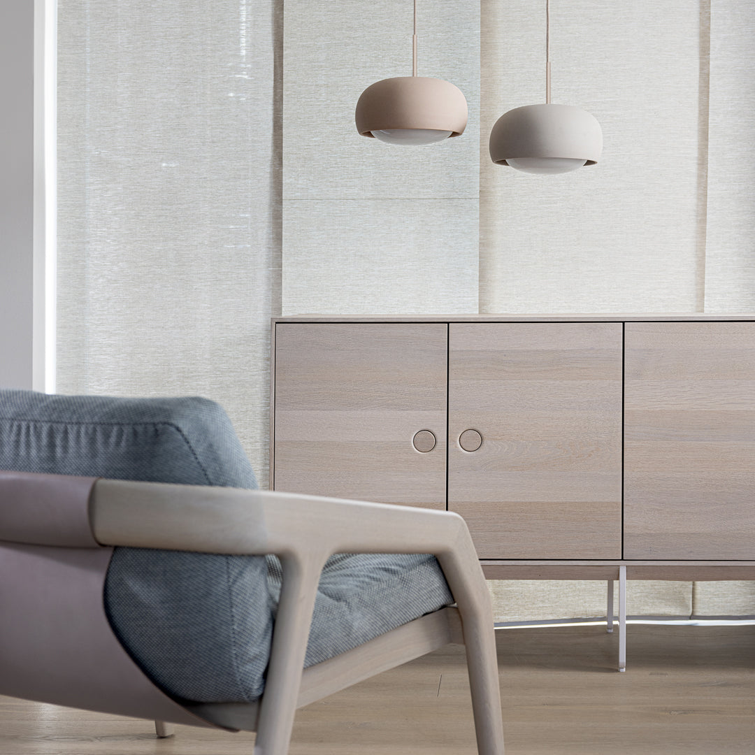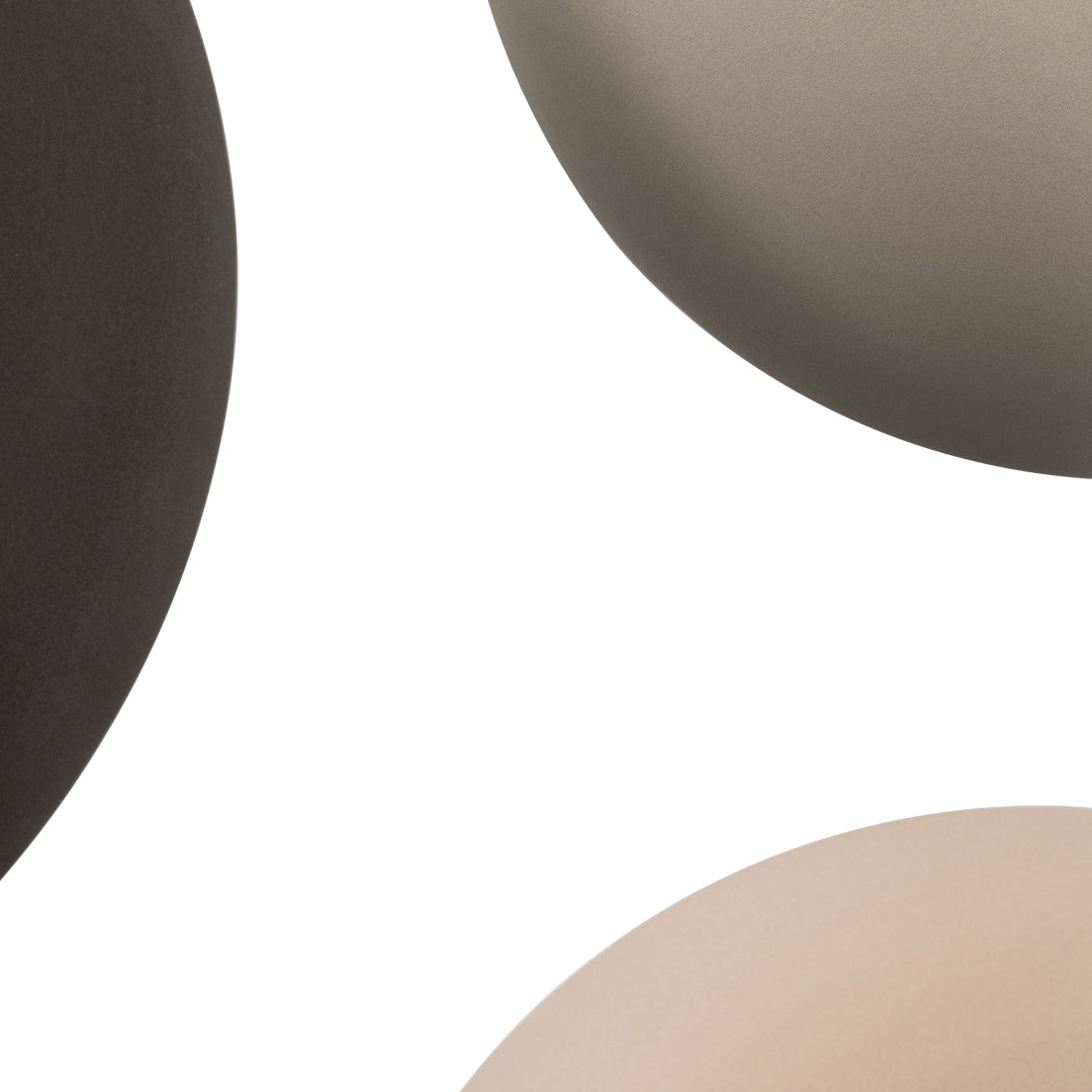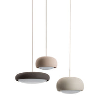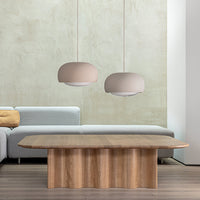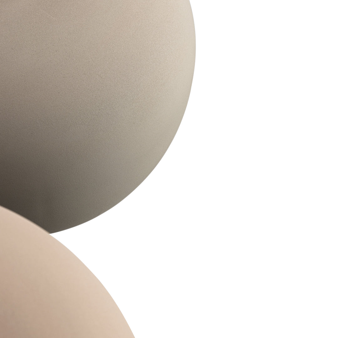 The shapely lampshade of the GEMA lighting family made of Engobe ceramic is available in the earth tones pale rose, sand and coal and three sizes. The surface is rough, as if dipped into sand. The Engobe ceramic colouring technique closes the open-pored surface of the ceramic, the process refines the clay.