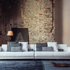 Modularity that becomes image: the model Identity with its clear-cut and harmonious lines and volumes may change its personality depending on the modules that compose it. Terminal elements, corners, individual sofas and chaise longues are easily combined with each other according to the desire. The distinguishing mark of Identity, that makes this sofa really special and interesting is the stitching that holds the press studs and characterize the seat. The backrest can be enriched by small cushions that can be freely moved while the arm is enhanced by the design that calls back a neo-classical curve. Lacquered metal feet.