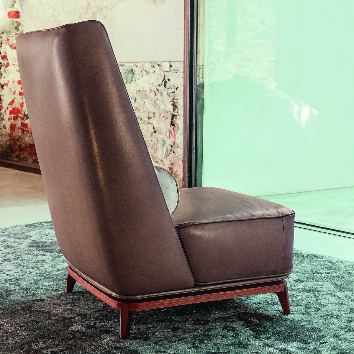 430 Opera is available in multiple sizes and number of seats. This sofa can be matched with armchairs and small armchairs. The most interesting feature of the 430 Opera sofa is the elegance of its particularly high backrest and the leather base that beautifully frames walnut wood feet.