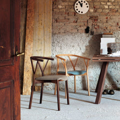 It doesn’t want to impress, but to fulfill its primary function: to welcome. The composition develops the contrast between the essential structure and the seat made of wood.