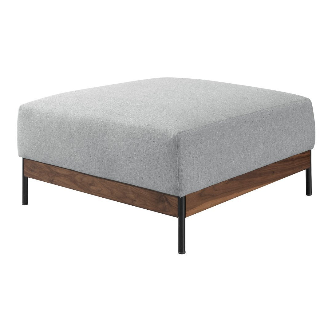 A soft balanced ottoman designed to be pleasing and comfortable, to fit equally well in a living room, as in a hotel lobby.
