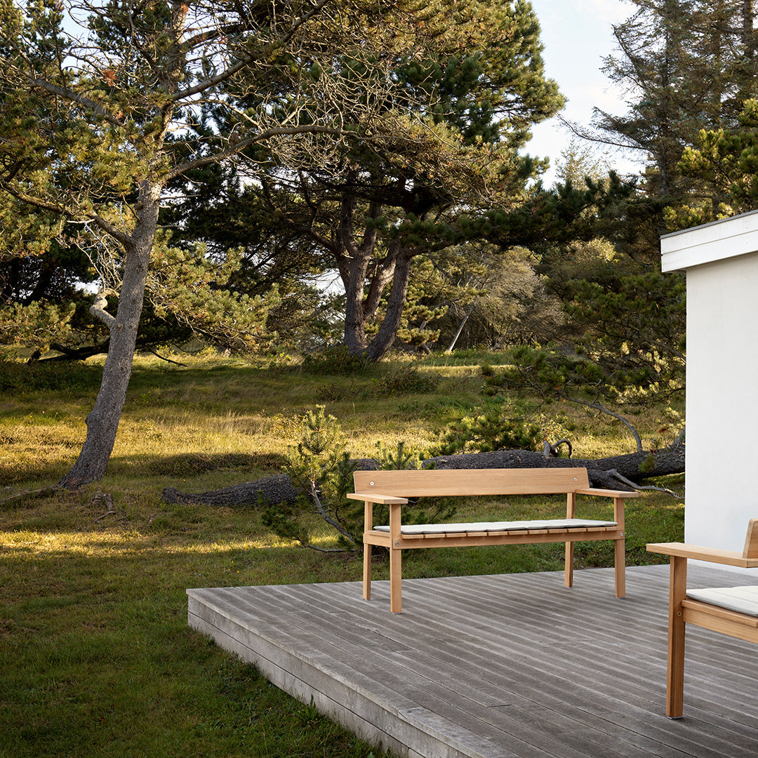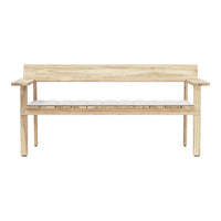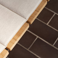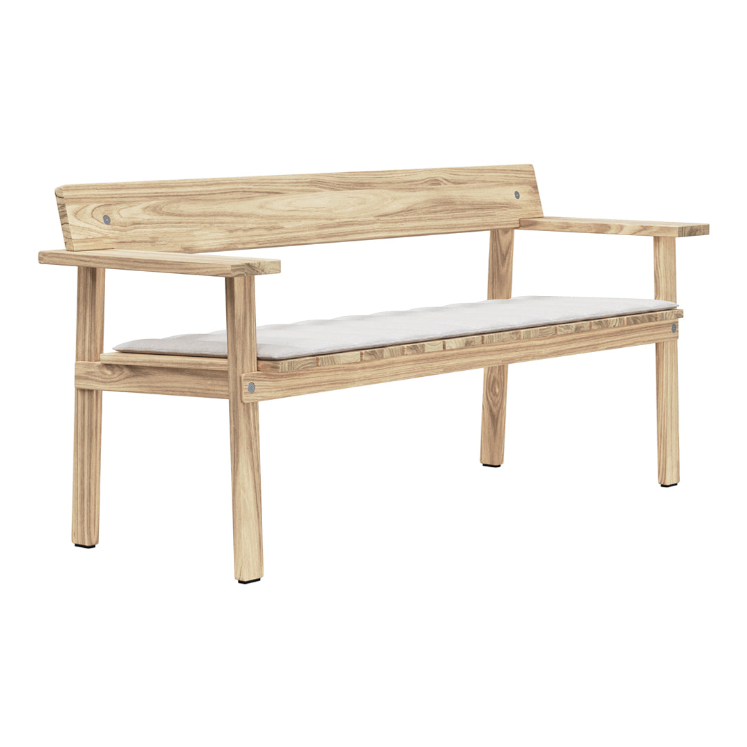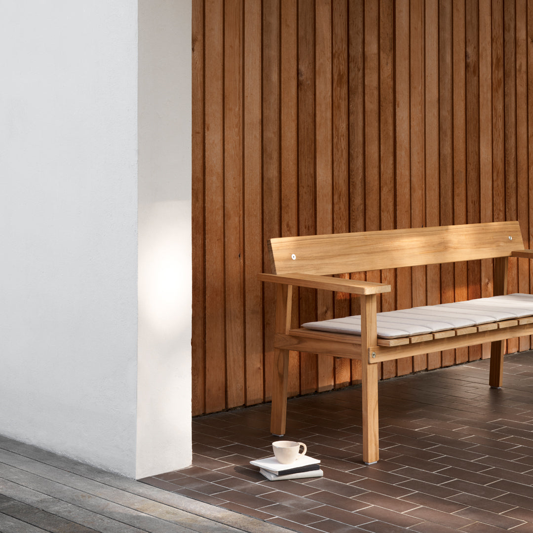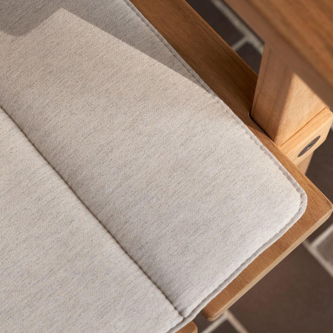 The non-slip cushion for the GL101 Timbur Outdoor Bench is designed to add extra comfort. The padded cushion is upholstered in Agora Life textile, a weather-resistant and recycled fabric and features visible seams which align with the width of the wooden slats to ensure a clean and balanced design. The fabric has a fluorine free finish and a high degree of durability.