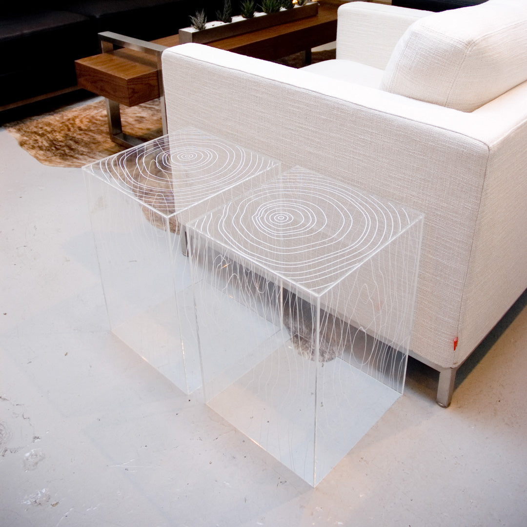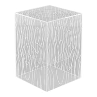 This accent table playfully fuses woodgrain patterns onto a five-sided acrylic box, juxtaposing organic lines with modern materials. It can be flipped over to create an elegant storage solution. Looks beautiful in a grouping or as a standalone accent.