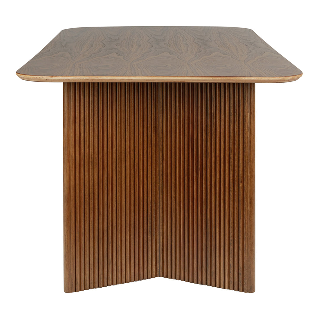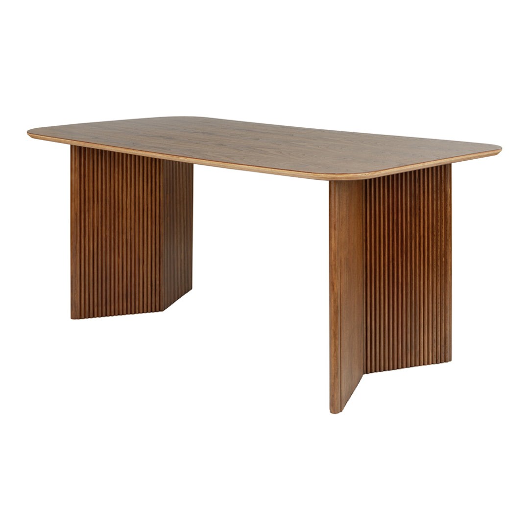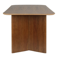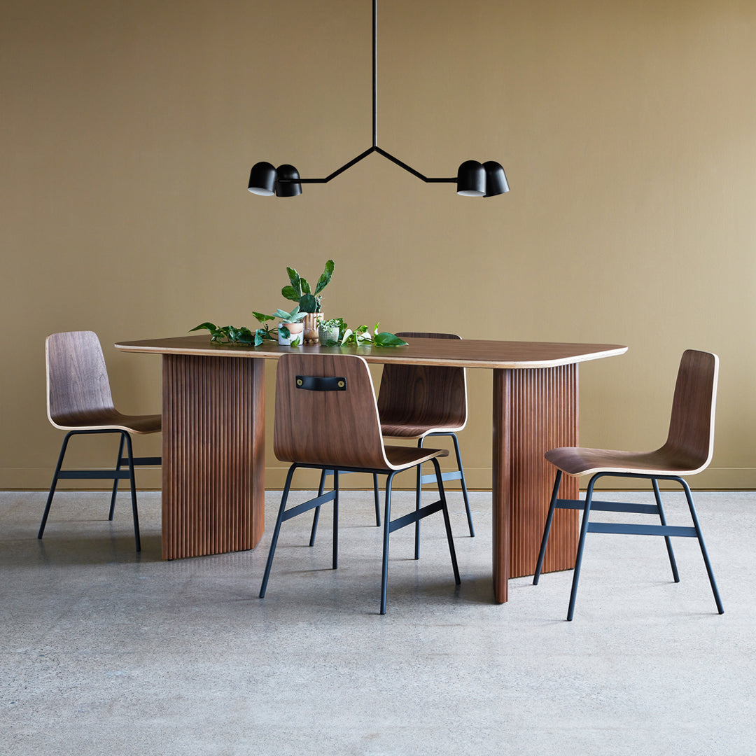 Atwell is a contemporary table collection that draws inspiration from Neo-Classical motifs. Available as a round or rectangular design, this table features a striking dual chevron base with scalloped, solid wood detailing that feels both elegant and monumental. With warm wood grain throughout, Atwell borrows design details, like an exposed ply edge, from Mid-Century Scandinavian precedents. More than just a stylish dining table, this design’s proportions are perfectly suited for use as a captivating desk. Choose the round version to seat four, or the rectangular to host up to six.