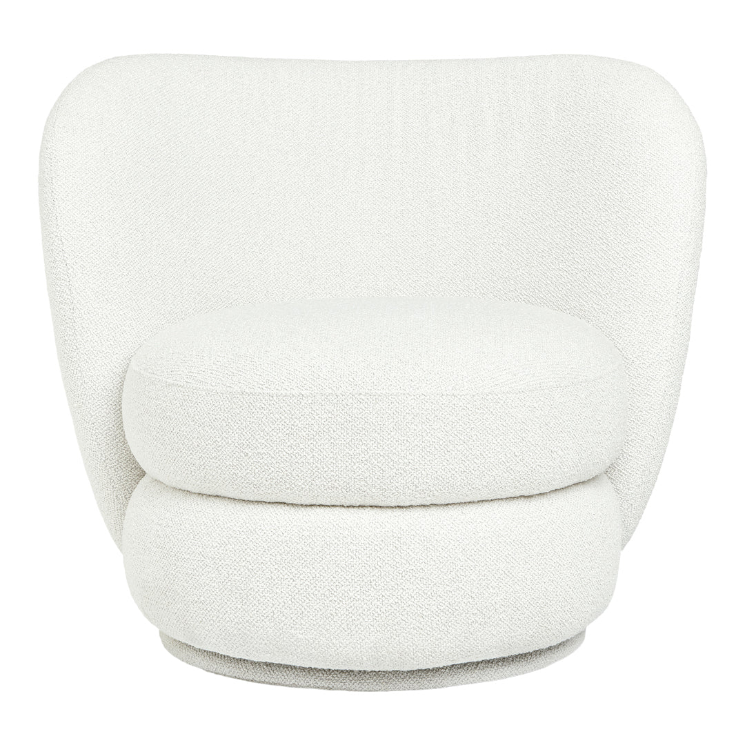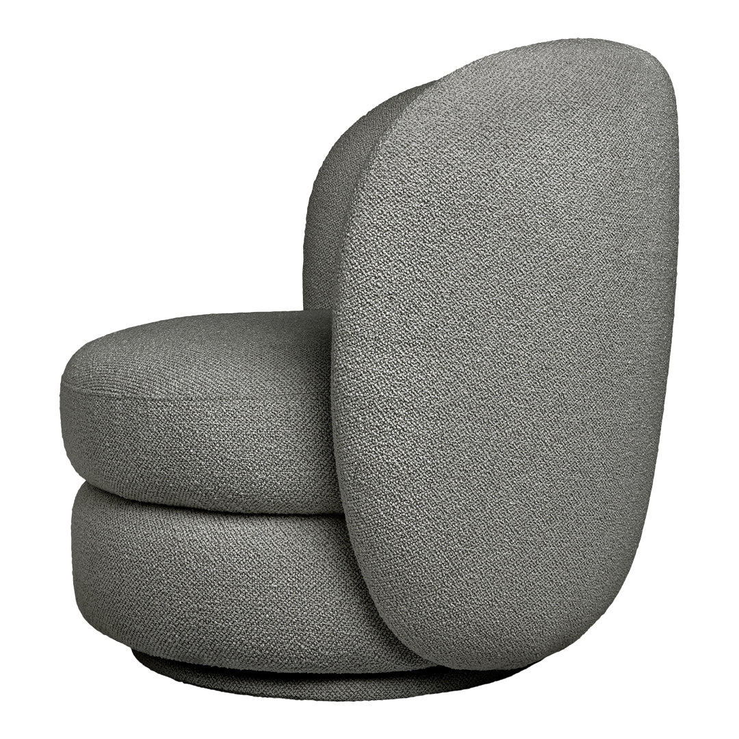 Whether you’re seeking a cozy place to unwind or wanting to add some understated glamour to your living room, the Forme Swivel Chair checks each box with style. Designed in a nubbly bouclé fabric, this elegant design brings both textural warmth and an of-the-moment aesthetic to your decor. Forme rotates smoothly around its axis, allowing it to adapt to the dynamic of the space it inhabits. A high back and sculptural round seat emphasize the cocoon-like shape for a unique perch that will become a charming focal point in any room. Arrange as a standalone accent chair or add another to create a striking pair.