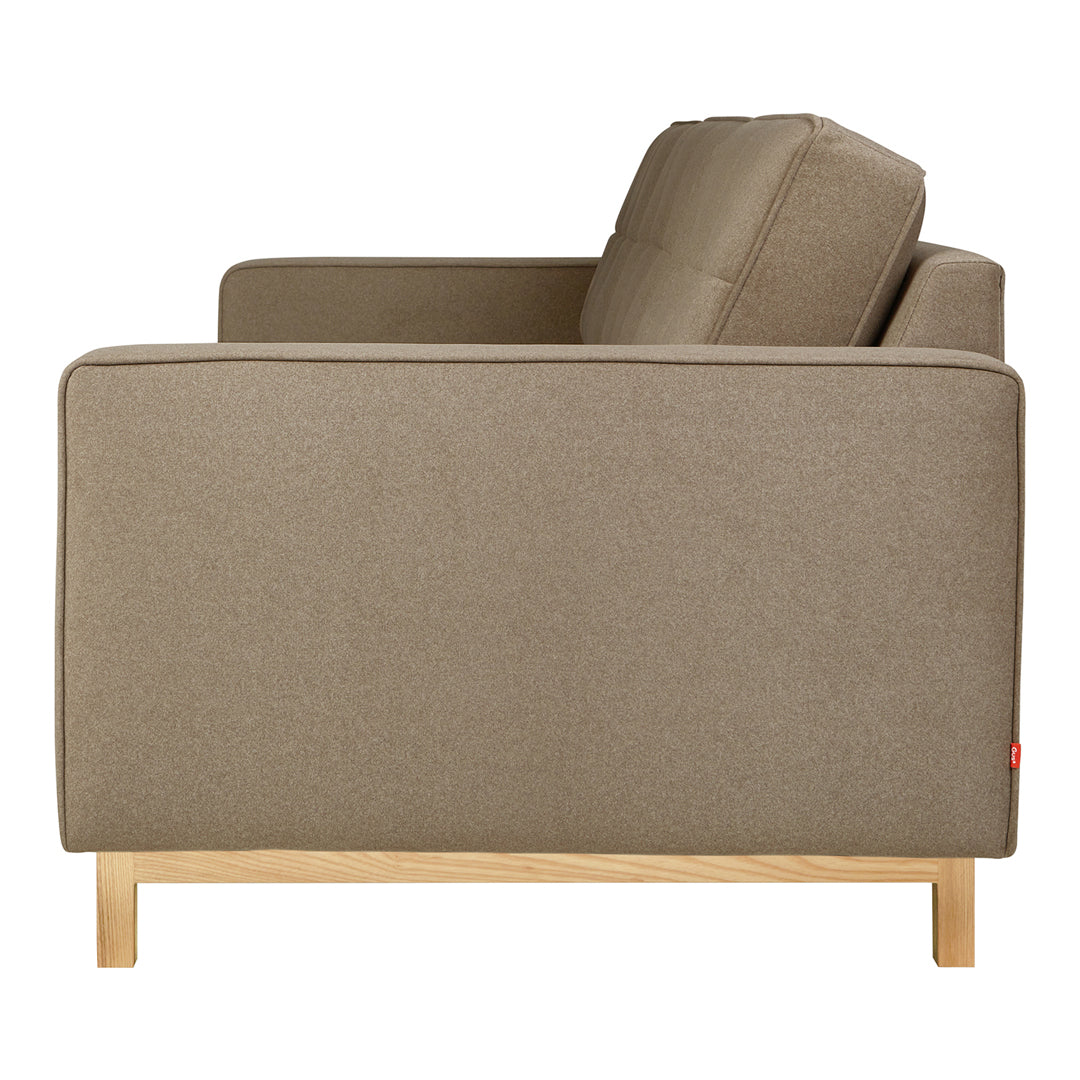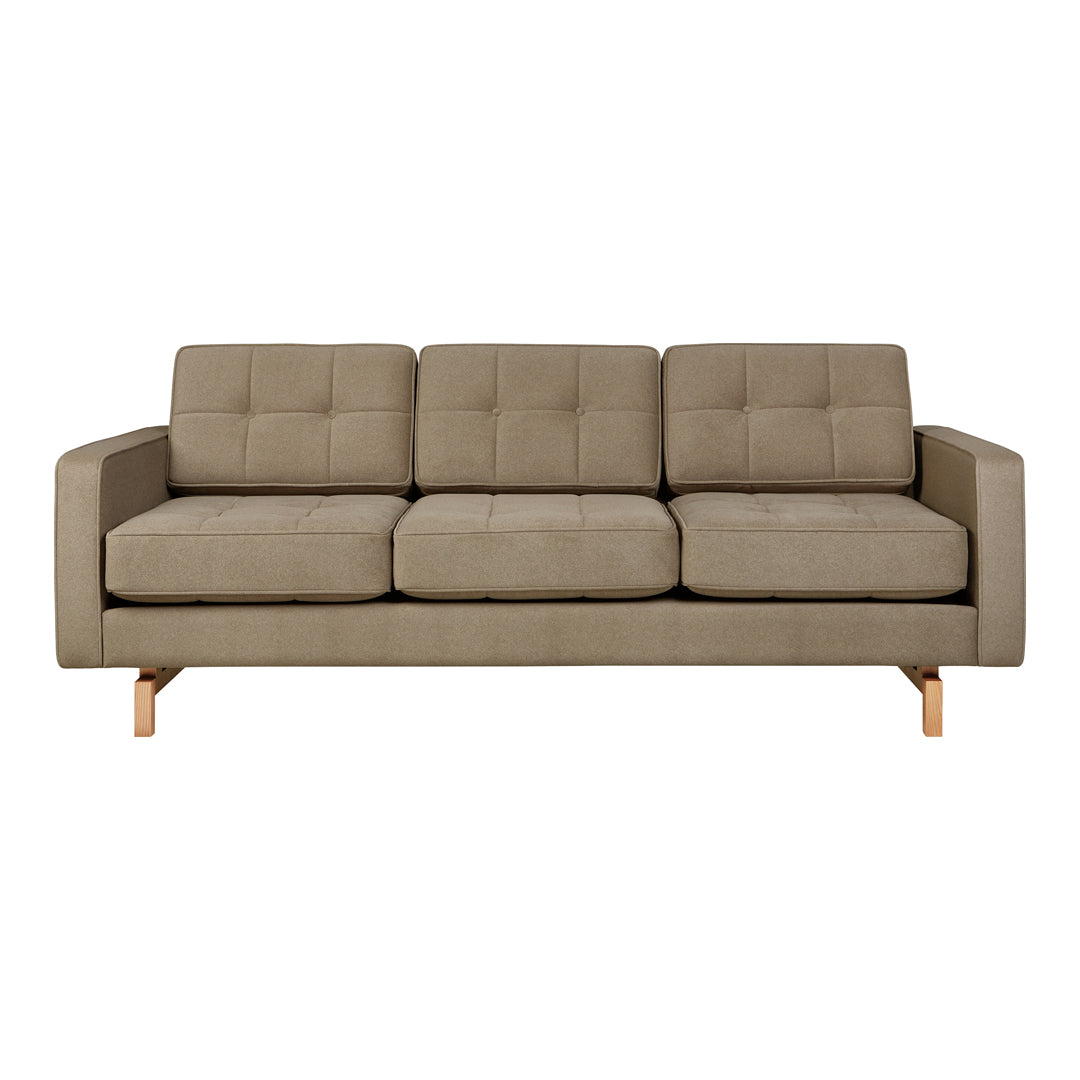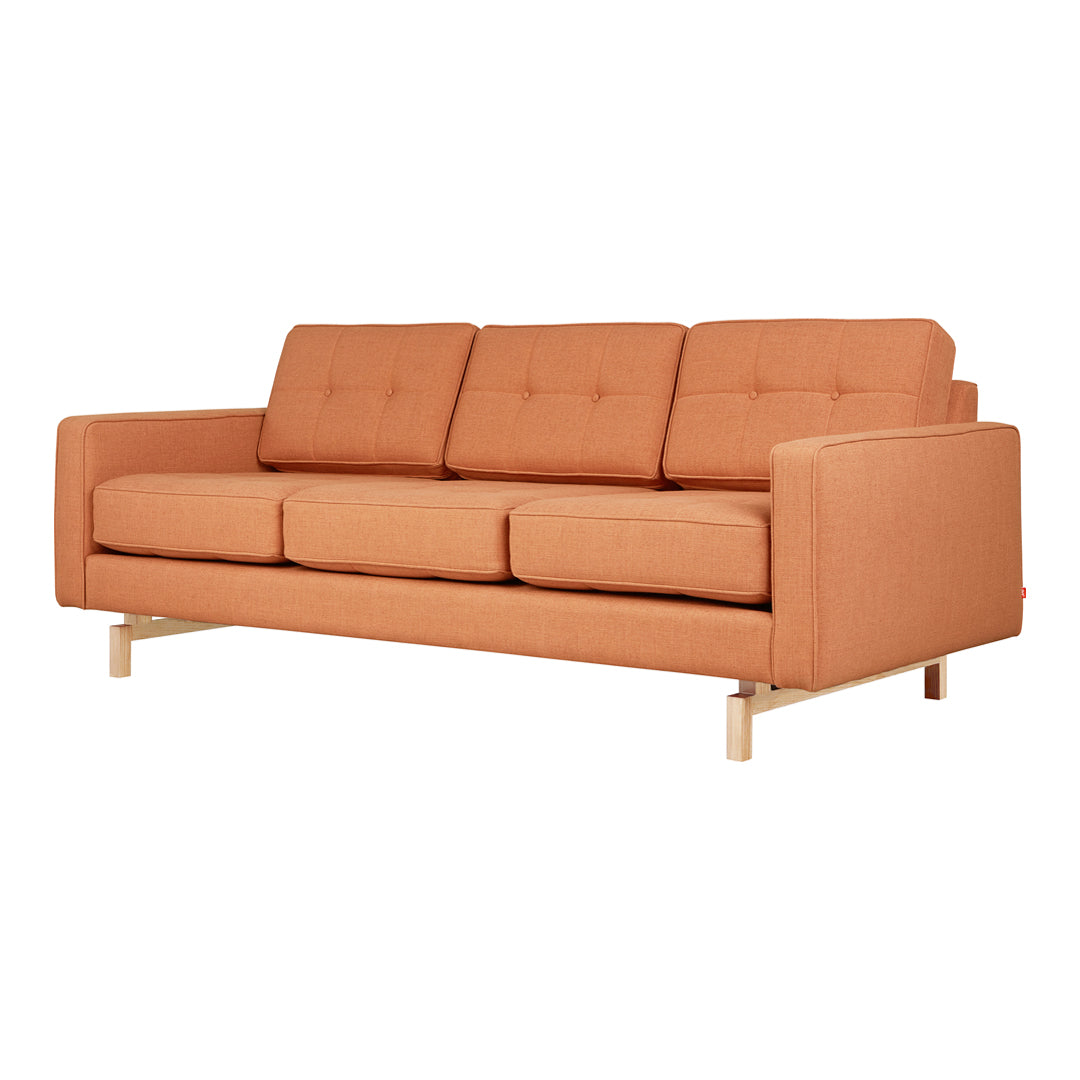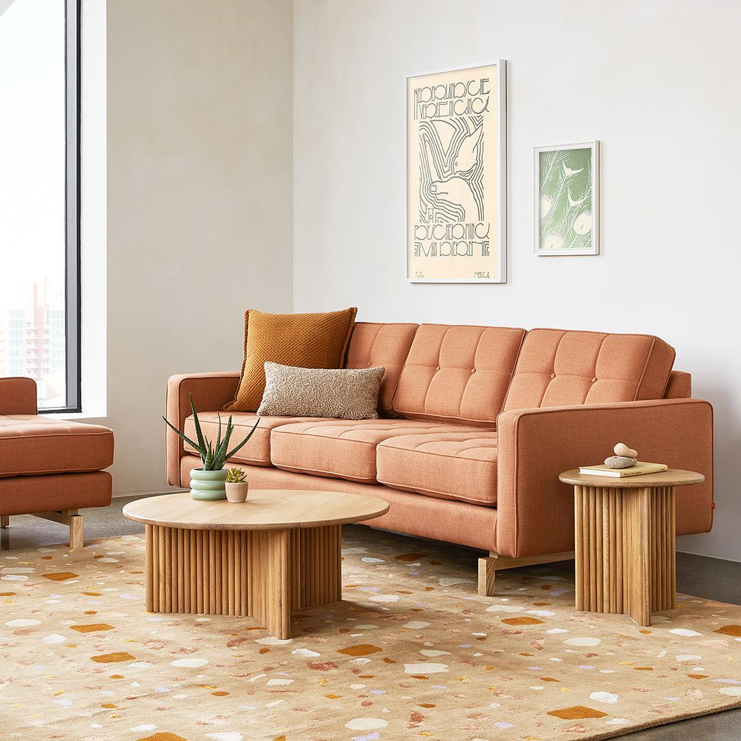 A modern update to the classic Gus* Modern Jane Series, the Jane 2 Sofa retains the iconic, mid-century look while adding contemporary enhancements. Piped upholstery edges and button-tufted cushions create photogenic surface details that are enhanced by Jane 2’s new, more refined proportions. A new wood base (available in light or dark wood finish) is inset on each piece, creating a sense of weightlessness that maximizes light and space. The frame is constructed with kiln-dried 100% FSC®-Certified hardwood in support of responsible forest management.