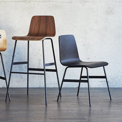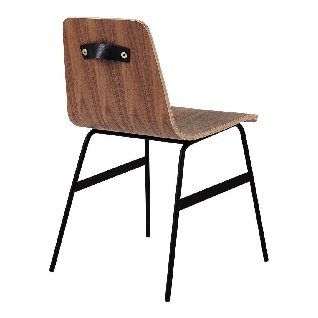 The Lecture Chair is a modern reinterpretation of a classic elementary school chair design. It features a one-piece, bent-plywood seat and back, with a functional leather and brass handle. The black, powder-coated steel legs are reinforced with sturdy flat bar stabilizers. The Lecture Chair combines comfort, design, and durability.