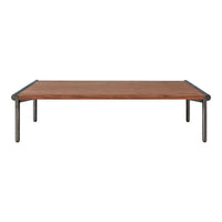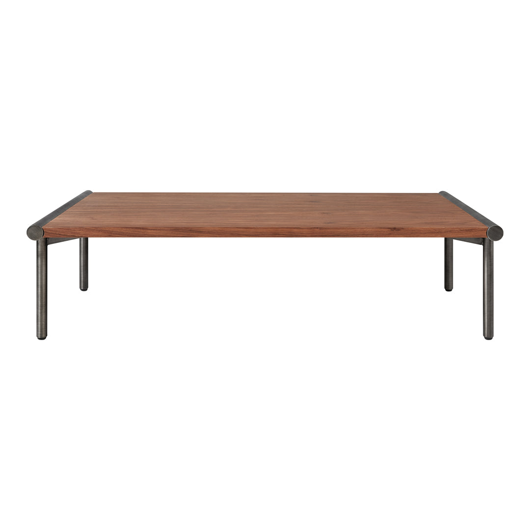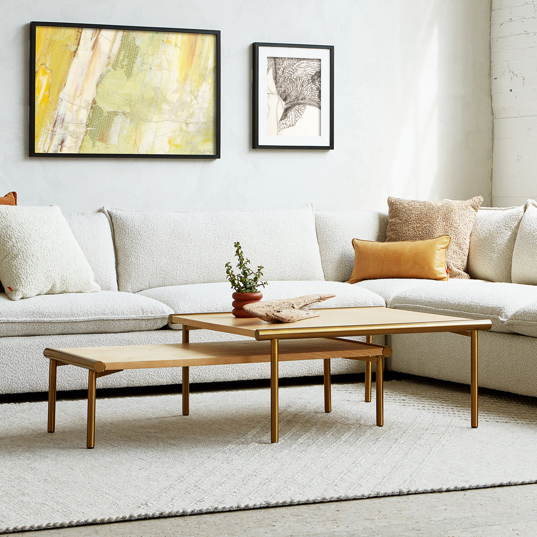 Bauhaus industrial design gets a contemporary update with the Manifold collection. Featuring elegant, clean-lined tables that can stand alone or nest together, the well-considered silhouettes optimize space with innovative design compatibility. Designed to complement larger sofas in living or office spaces, the rectangular coffee table features a low profile and a long wood tabletop. While it provides ample space to spread out, the slender metal legs contribute to an overall light, sleek aesthetic. Available in two combinations—Blonde Ash with Brass or Walnut with Pewter – each with the promise to elevate your space.
