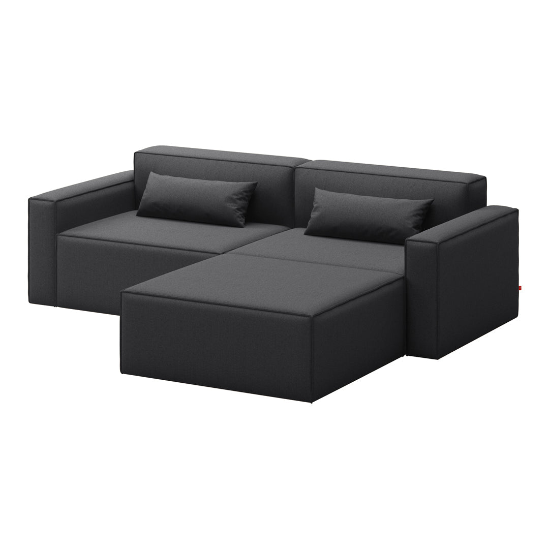 The Mix Modular Collection lets you mix and match components and fabrics to build a custom sectional, sofa or chaise to perfectly suit your space. The design uses 5 basic components (left arm unit, right arm unit, armless unit, corner unit, and ottoman) which can be added and combined to create an unlimited number of upholstery configurations. Choose matching fabrics or mix things up to make it your own. Components can be easily reconfigured or added later to adapt to changing needs. Move an ottoman from the left to the right side of a sectional to change the layout of your space. Build a condo-sized sectional knowing that you can add more components down the road if needs change. The tight seat and back give the design a clean-lined, contemporary look, and each component has French seams to subtly soften the edges. Includes matching bolster cushions for added style and comfort. Constructed with kiln-dried 100% FSC®-Certified hardwood in support of responsible forest management.