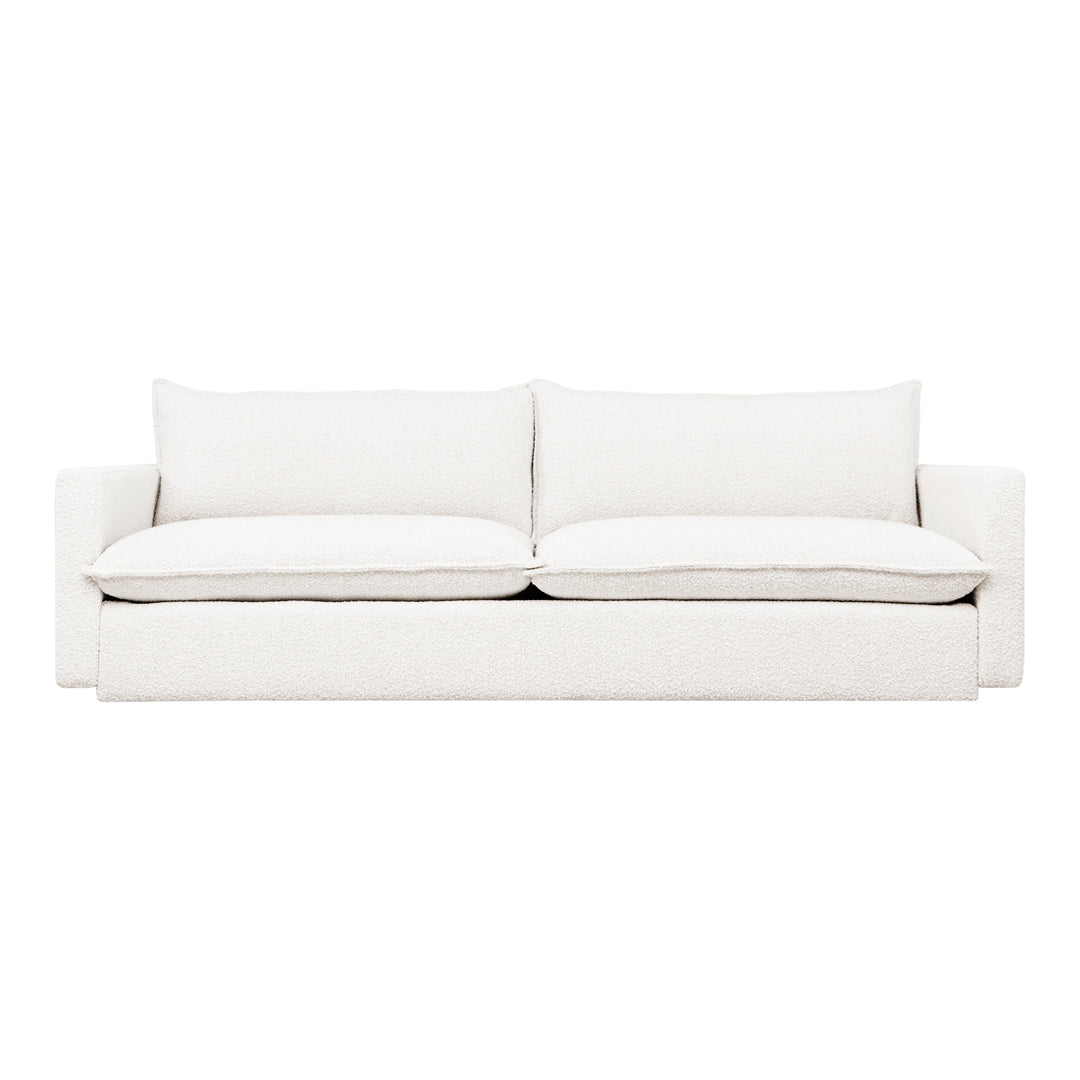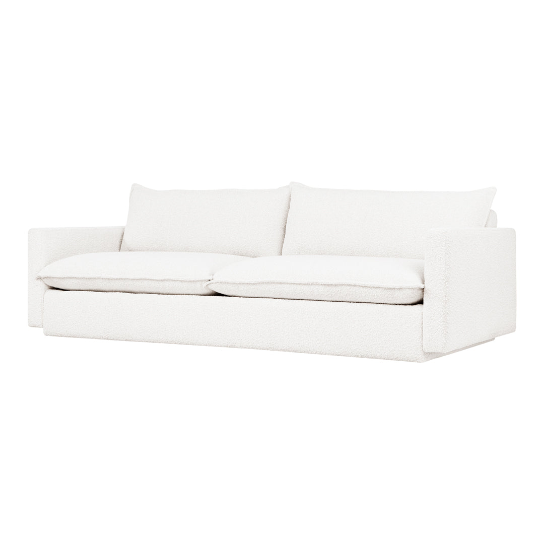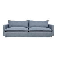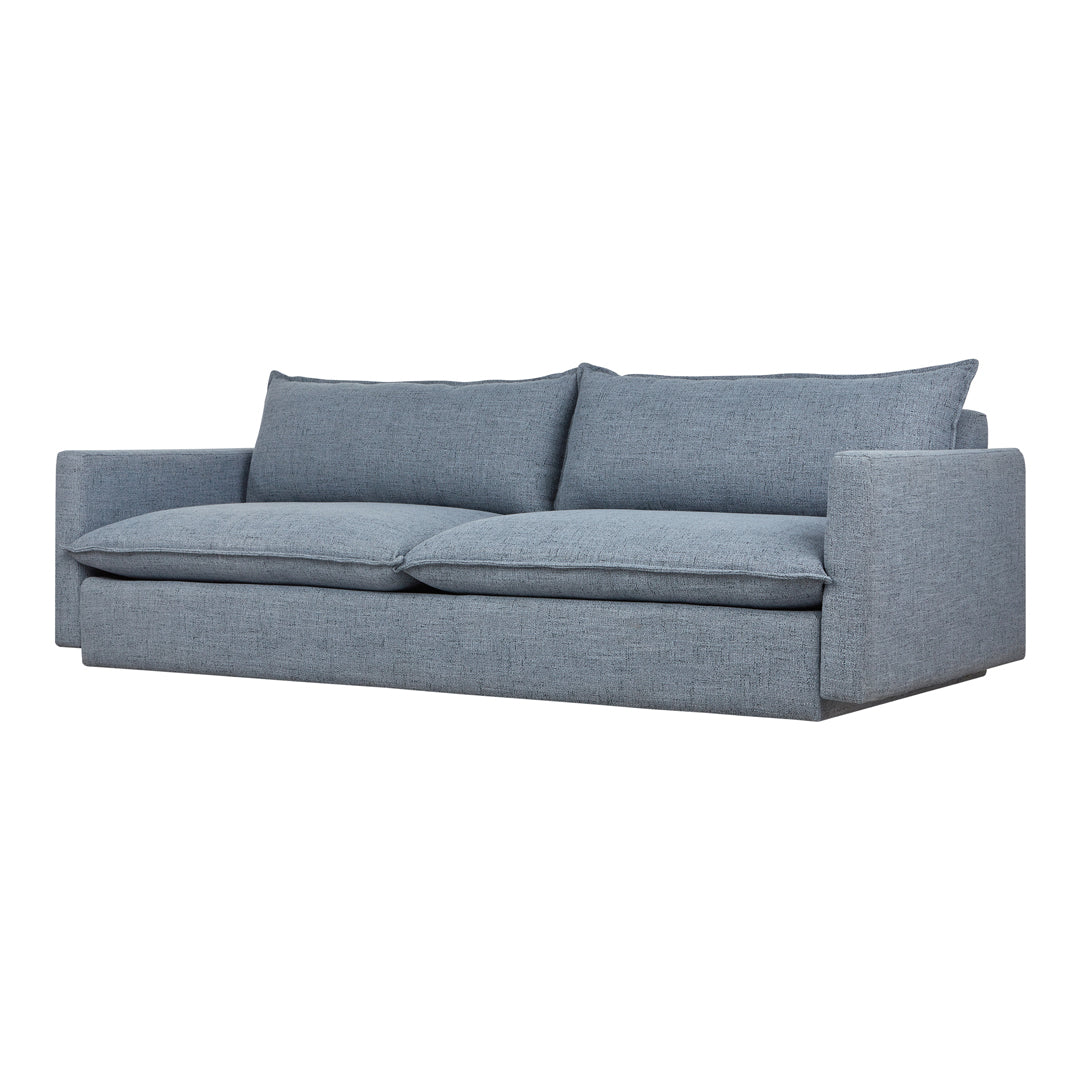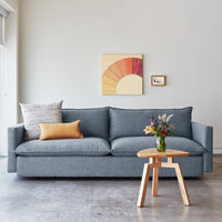The cloud-like Sola Sofa is an open invitation to lounge. Embodying the ease of coastal living in a design inspired equally by contemporary Italian design and mid-century classics, Sola is perfect for entertaining or enjoying an afternoon siesta. A plush, expansive seating area, and back cushions filled with our signature, eco-friendly PET fill (made from recycled plastic spun into billowy, synthetic down) means an extra cozy experience. French-seam detailing, stepped arms, and inset legs all subtly convey a feeling of weightlessness that will beckon you to sink in after a long day