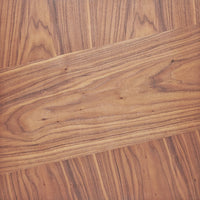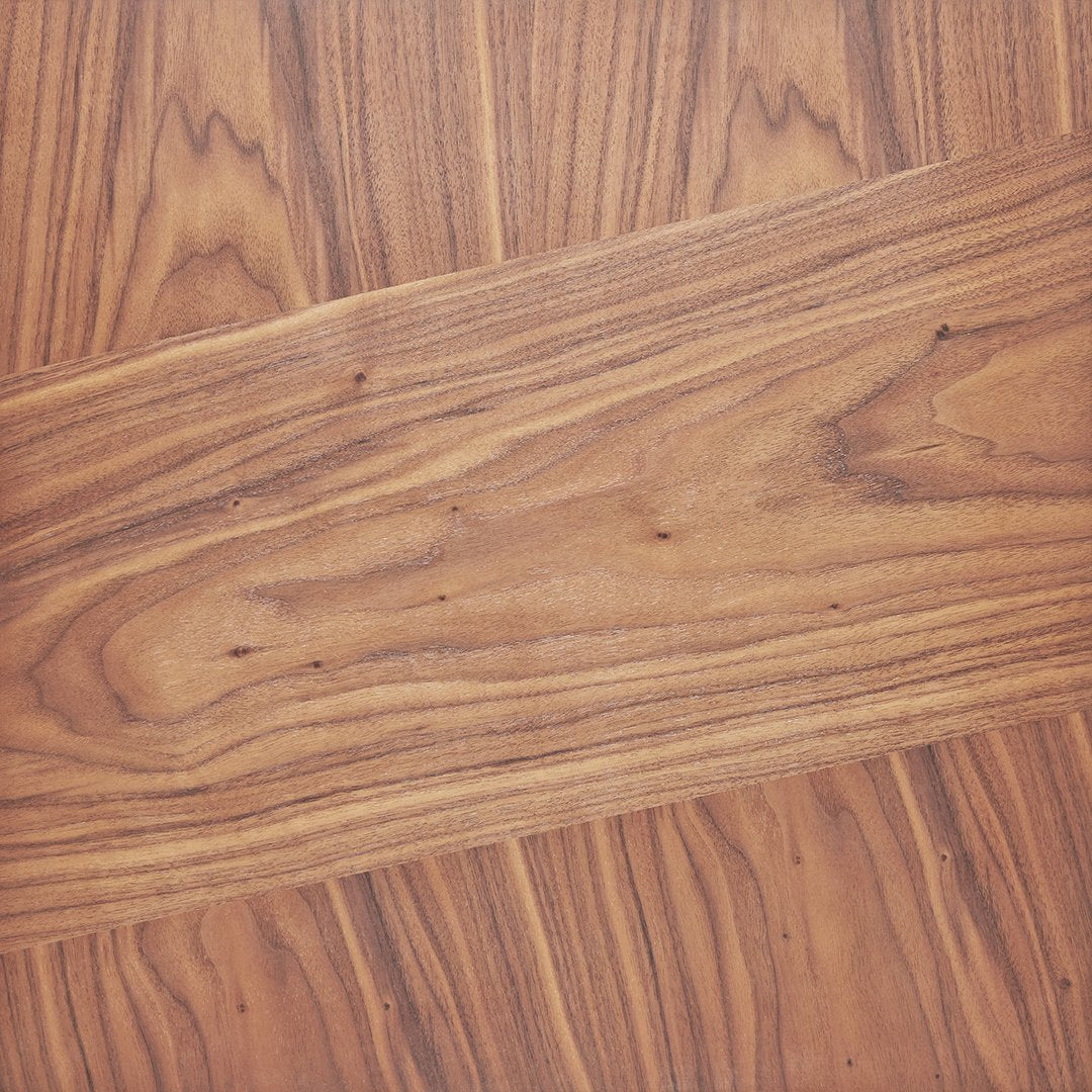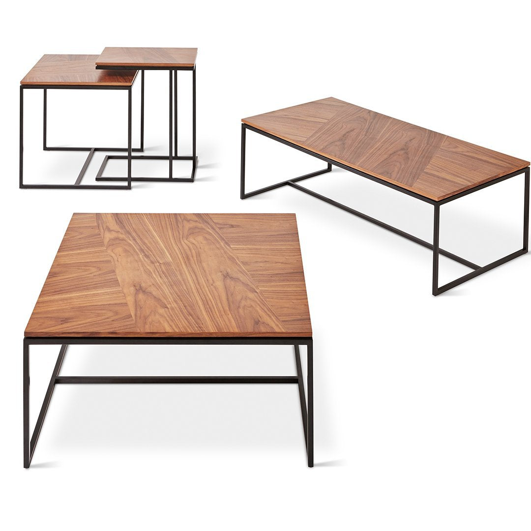 The Tobias End Table is a minimalist, geometric accent piece well suited for modern spaces. The square top features a dynamic arrangement of walnut wood grain panels, which rest on a slim, solid steel base. A subtle reveal along the table edge creates the illusion of a floating top.