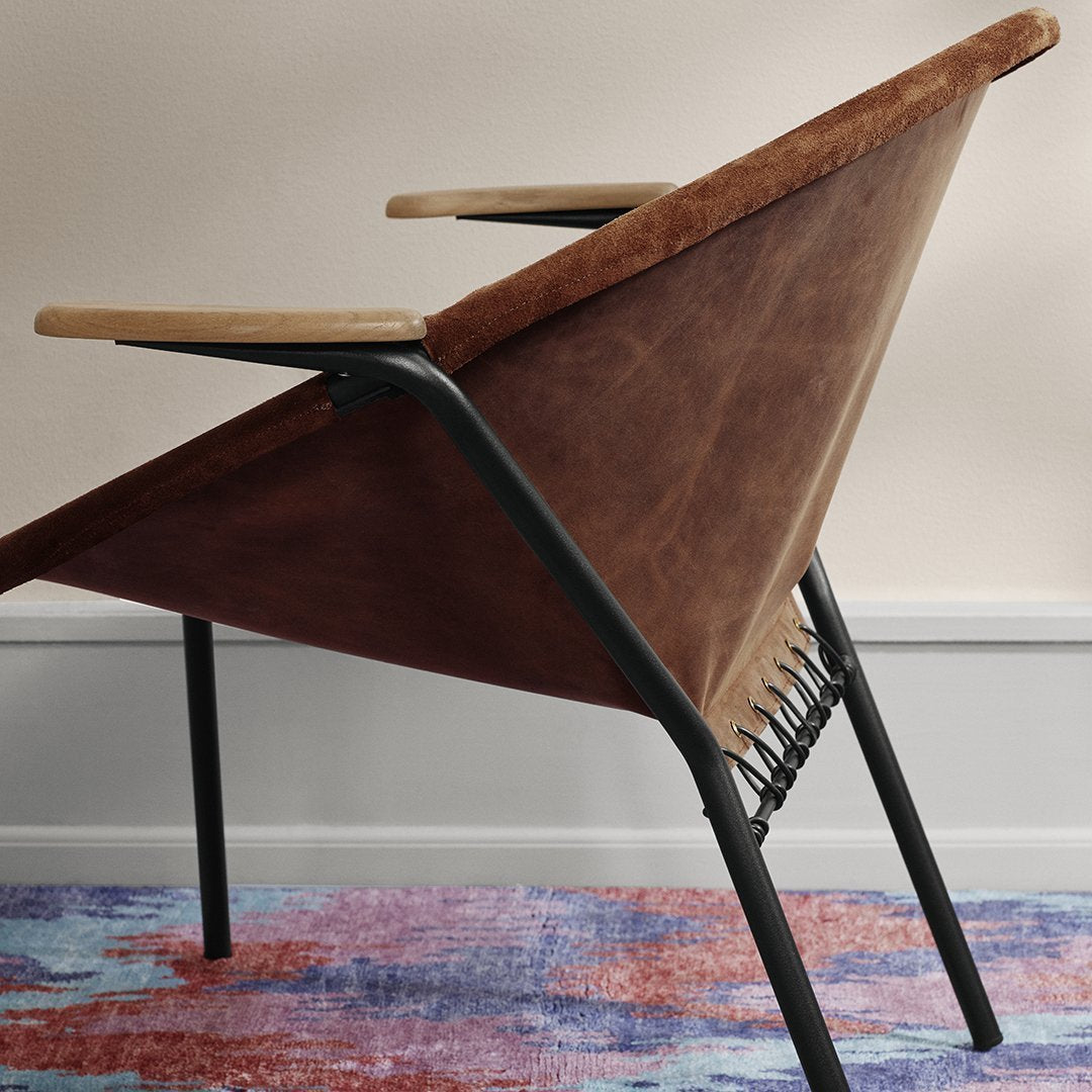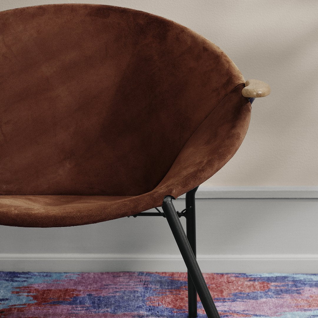 The iconic Balloon lounge chair with its industrial look was the work of the highly acclaimed Danish architect, Hans Olsen, who designed the chair in the 1950s. The design of the lounge chair is raw, playful and embracing, appealing to the senses with exquisite suede, teak armrests and a light metal frame. Balloon will lend a touch of cosiness and lounge ambience to any area of the home, either alone or in the company of other furniture, whether modern or classic. The lounge chair does not take up much space, it is lovely to sit in and it will add a touch of sophistication to any living room, family room or study. In terms of craftsmanship, Balloon requires a huge degree of expertise. The suede is stretched over the frame and fastened to it at the back with laces a beautiful detail. While the Balloon lounge chair has a raw, masculine look, there is also something feminine and charming about it.