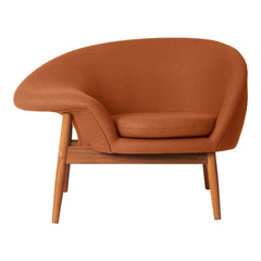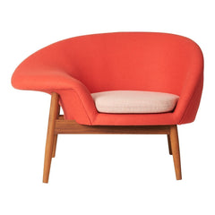 A unique asymmetrical armchair, designed by the highly acclaimed Danish architect, Hans Olsen in the 1950s. The Fried Egg armchair, in all its personality and capriciousness, is at last available for any design lovers who wish to add a bit of edginess to their homes in the shape of a unique item of designer furniture with roots in Danish Modernism. This roomy, comfortable chair was christened ‘Fried Egg’, because that is what it looks like when viewed from above. The flat armrests invite you to swing your legs nonchalantly up on them, when you really feel like relaxing. As a tribute to the 1950s’ adoration of colour and love of teak, one of the Fried Egg options is this elegant type of wood and upholstery in a range of stunning colours. You also have the option of playing with two-tone combinations, which are strongly reminiscent of a fried egg. Choose an exclusive furnishing fabric from Kvadrat in a carefully selected shade from the Warm Nordic universe. The frame is available in the highest quality teak.