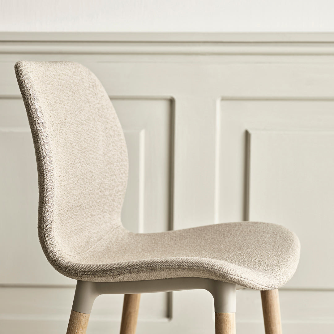 Questions about the Seed Bar Chair - Upholstered - Oiled Oak Base, White Pigmented?