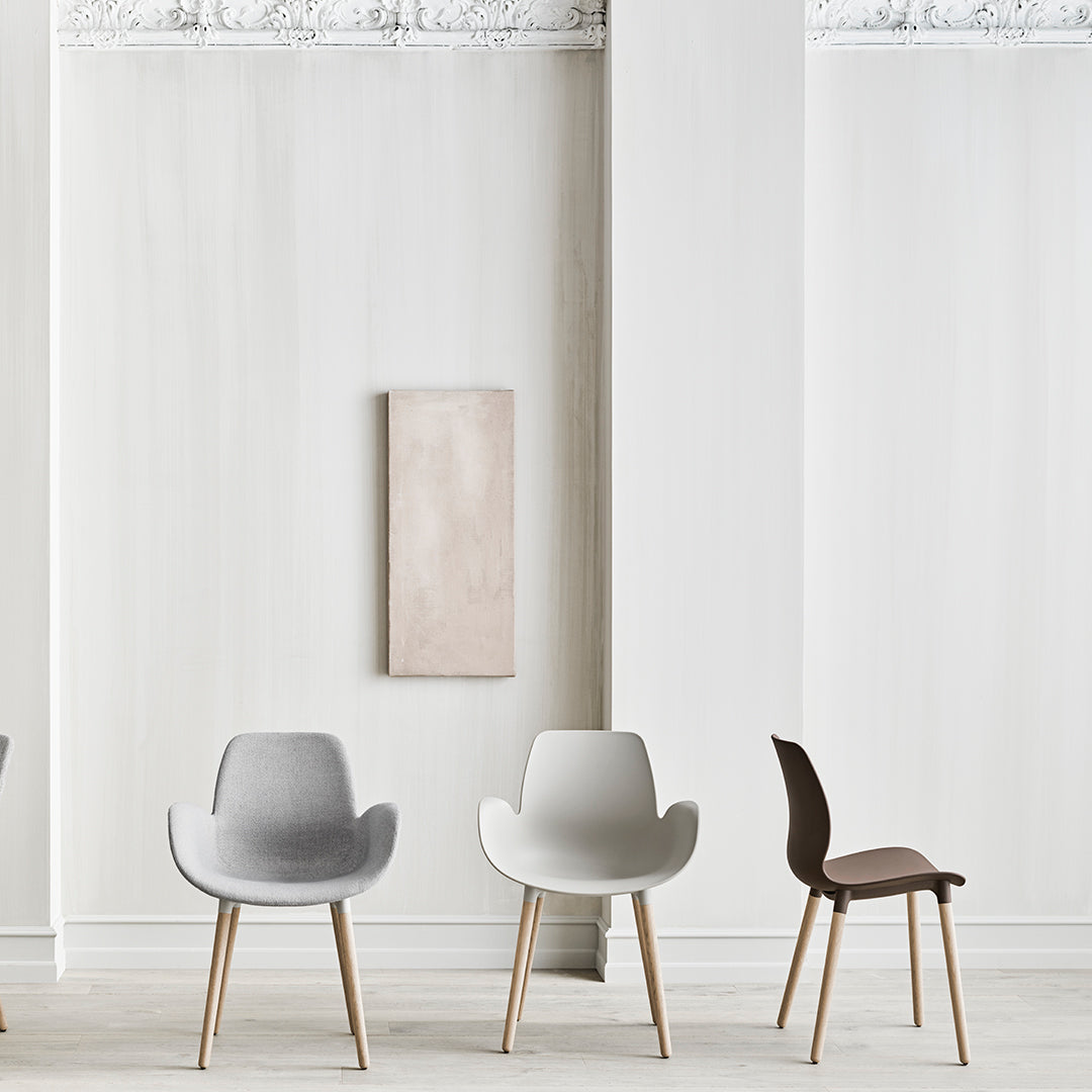 The Seed chairs are tailored to your needs and can be beautifully adapted to all settings – from home offices and dining rooms to professional markets. Made from 85% recycled plastic, the poetic shape is designed to embrace you with exceptional comfort and support. During the moulding process, where waste plastic is converted into the shape, it creates a subtle interplay of colors, which makes each individual shell completely unique. Choose the frame type that best suits your needs, or the upholstered version in your preferred upholstery fabric and color. The possibilities are endless.