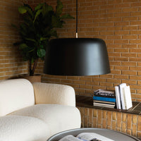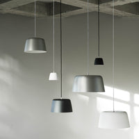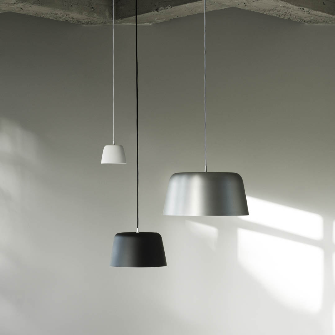The design of Tub unites inspiration from nature with the minimalistic aesthetic characteristic of Nordic design. Taking center stage, the main feature of the Tub Lamp collection is the generous lampshade which, besides its aesthetic appeal, encapsulates the light and emits a pleasant, uniform glow. The references to the organic shapes of nature are evident in the smooth merge of lampshade and cord. The slightly curved top of the lampshade elegantly grows into a stem, from which the electric cord is wired, presenting a decorative detail reminiscent of the silhouette of an apple or other of nature’s many fruits and plants. The cord and stem seemingly grow together, making the lamp and cord seem like one coherent unit. Tub Wall Lamp comprises the same characteristic features as its pendant siblings. The lampshade is held by an elegant aluminum arm, making space for the same stem-inspired feature as the pendant lamps. For added flexibility, the wall lamp has a free range of movement in all directions.