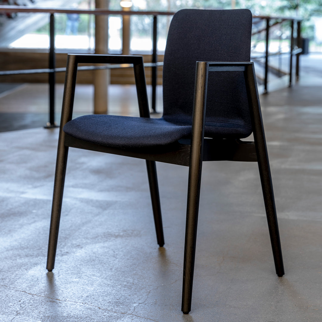 Mood Classic is a sustainable wooden armchair with a flexible back. It combines tactile surfaces with aesthetics and function in the most beautiful way and allows you to create the right atmosphere and the right environment for your surroundings. Mood Classic has fine lines and beautiful craftsmanship details. The armchair differs from most wooden chairs by having a flexible back. The base is kept in a tight, simple design language and the narrow rear section with forward sloping lines gives the chair a dynamic look.