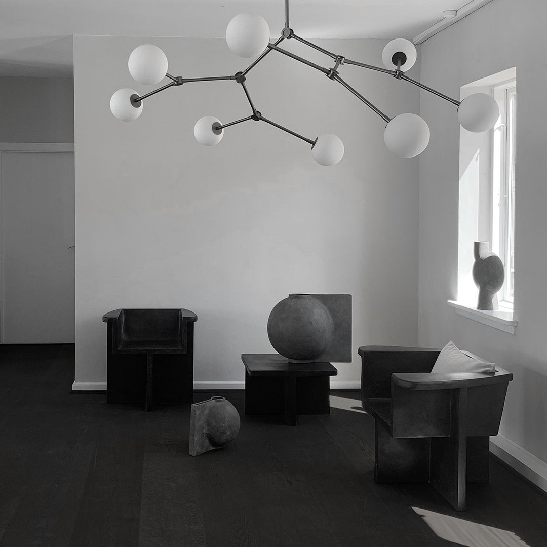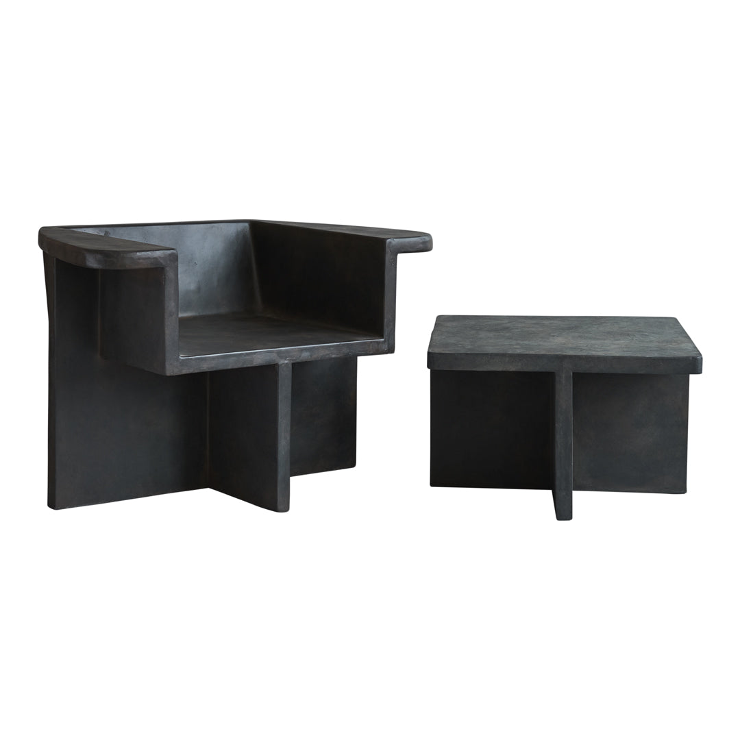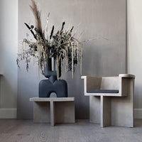 Inspired by the Brutalist architecture movement of the mid-20th century, the Brutus collection comprises a dining chair, a lounge chair, a stool and a coffee table cast in lightweight fiber concrete creating a unique surface texture increasing mobility. Each piece is hand painted to create a textured, unique surface. Emphasizing the fine balance between sharp architectural lines and a somewhat softer curve in the back and armrest, the Brutus collection is sculptural statement pieces with a compelling seating comfort. Designed by Kristian Sofus Hansen & Tommy Hyldahl.