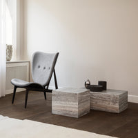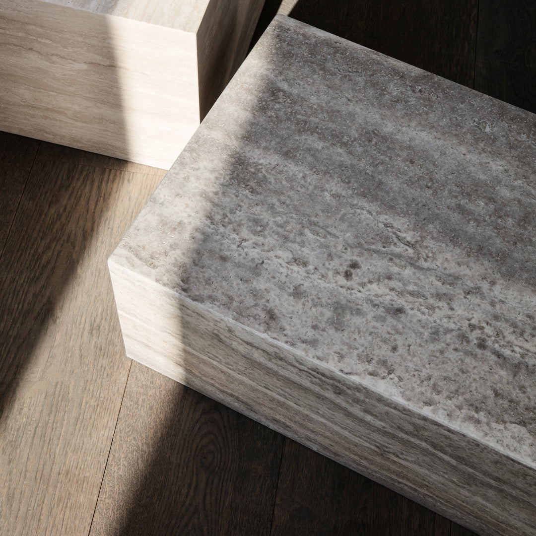 Made from travertine stone, Cubism is all about embracing the qualities and beauty of the material, which for centuries has been used in classical architecture around the world. The natural stone has a tactile surface with small holes and incorrections, adding a tactile quality to the geometric shape.