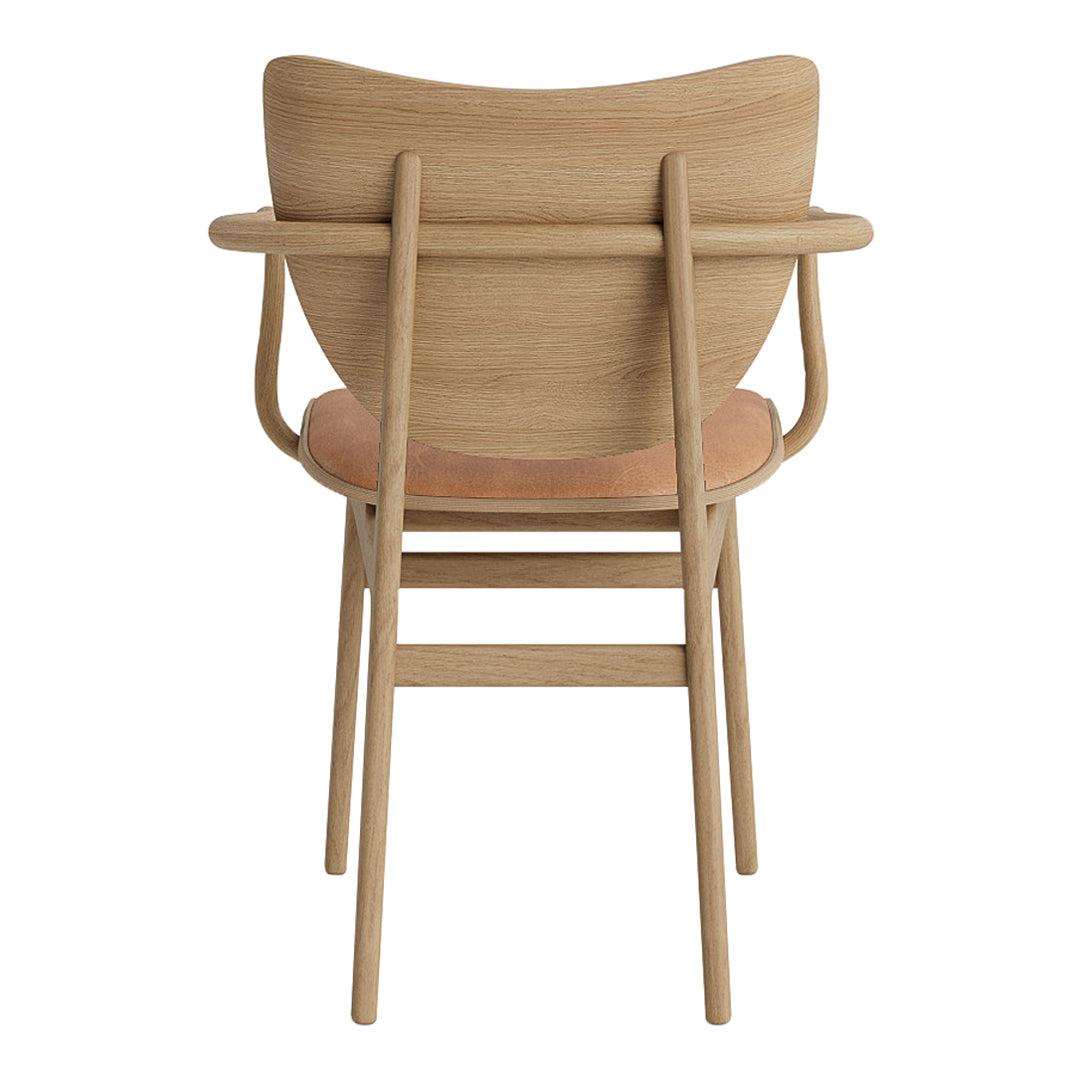 The Elephant Chair is a dining chair version of the popular Elephant Lounge Chair. To add even more comfort we are introducing an Elephant Chair with armrest. The armrest is made of bent oak and provides firm support. The design is a new and modern touch to traditional Scandinavian dining chairs and the armrest with its strong lines gives an interesting contrast to the soft shapes of the Elephant. The result is a chair that can stand stylish on its own as a side chair or in a set of many around a dining table.