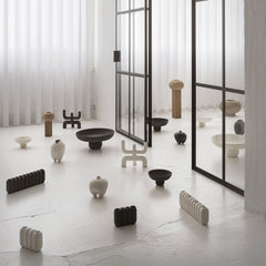 Rich on architectural references, the Empire Vases reminisces building facades to create a slim and vertical design. The riffled surface creates a tactile feeling and shadows changes the vase throughout the day. The height of the Empire Vases makes them ideal for tall flower decorations and long branches. The series is made of ceramic as it is a hand glazed natural product, the colours may vary slightly and while it is not 100% waterproof, a bag for fresh flowers is included. Designed by Kristian Sofus Hansen & Tommy Hyldahl.