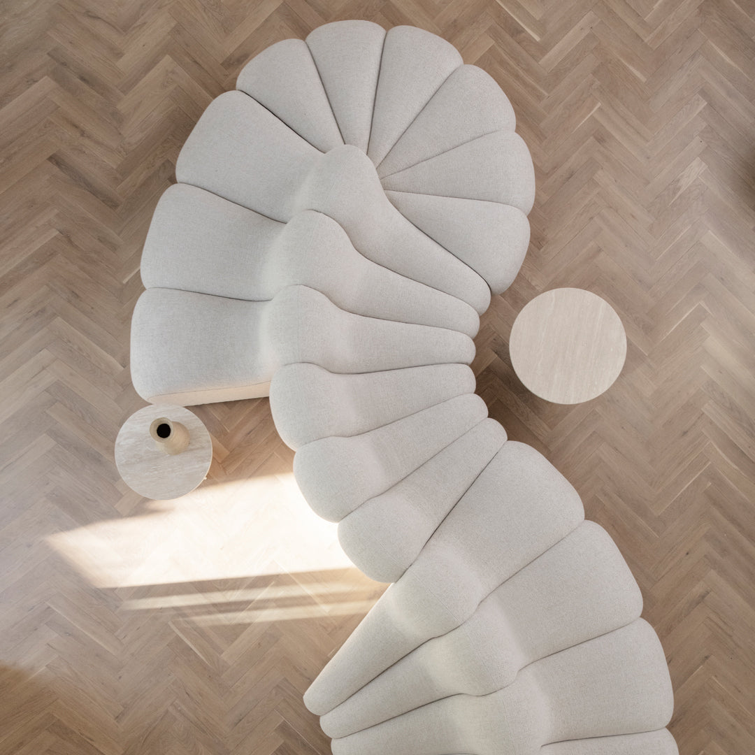 Inspired by iconic 70s furniture design and sunken lounge interiors, reinterpreted in a fresh and contemporary way. Suitable for all interiors with endless possibilities and combinations of modules to create a dreamy and fluid space.