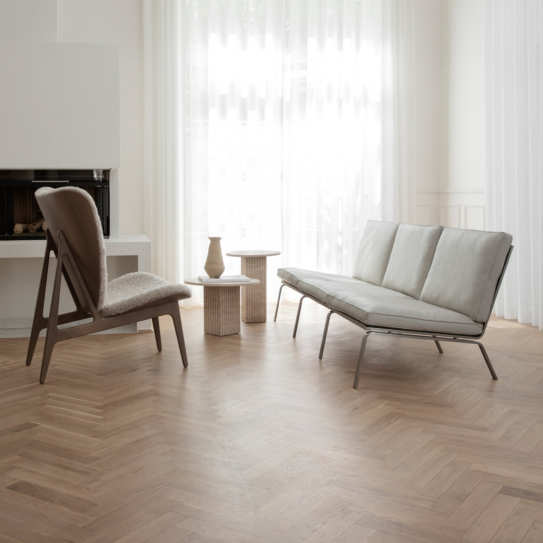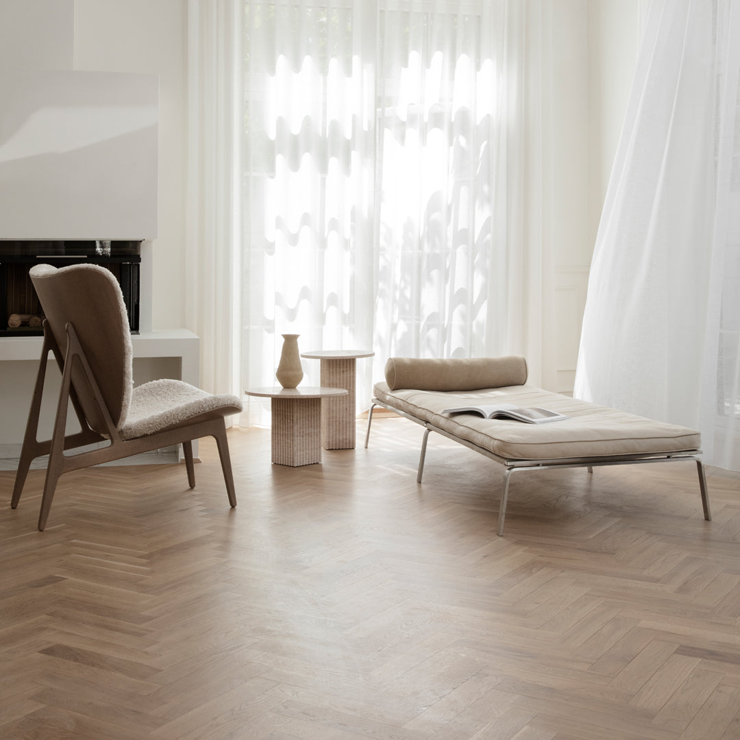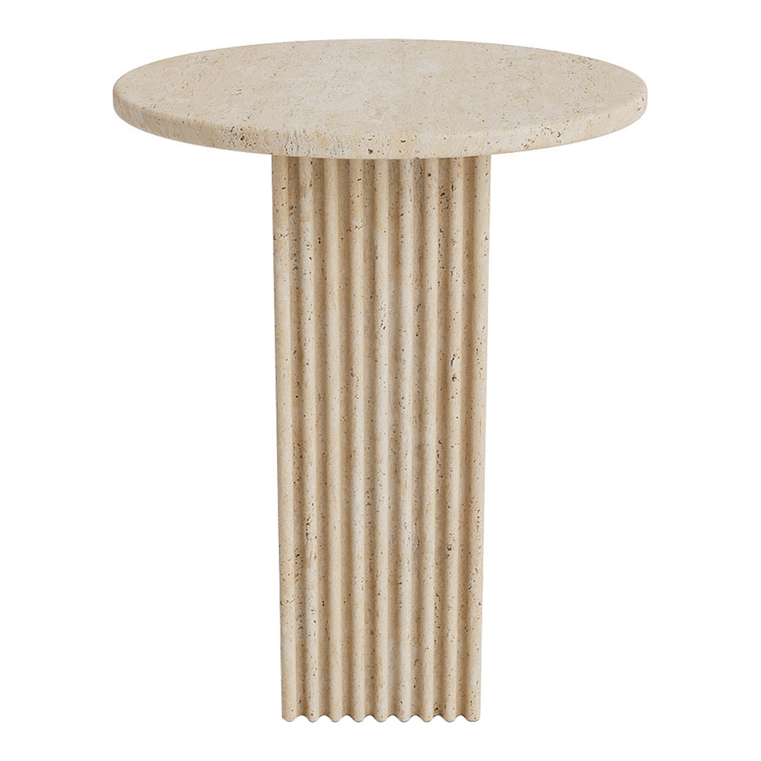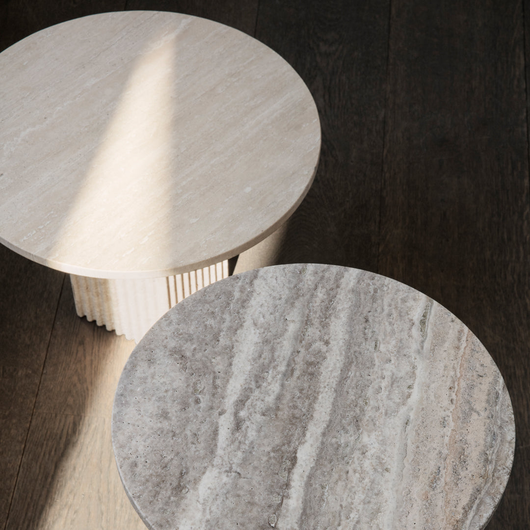 Soho is made from travertine with a beautiful natural surface of small holes and incorrections. Made from travertine plates, the table is still lightweight and easy to move around.