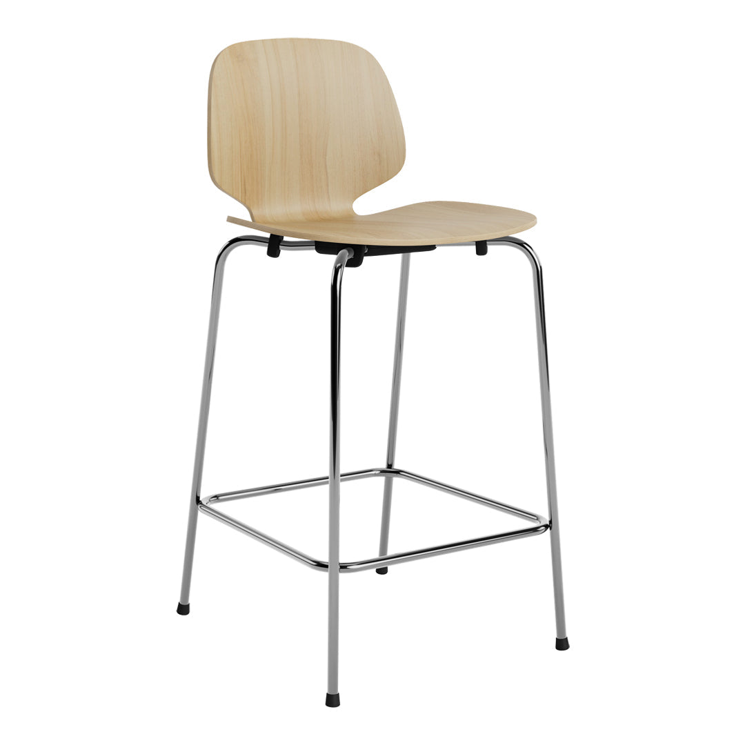 My Chair Barstool consists of a shell made in molded oak with a clear lacquer or in a painted ash veneer version. Comes with legs in chrome legs in chrome, powder coated steel or molded oak. The rubber pieces between the shell and the legs as well as the plastic parts underneath the ends of the legs are specially designed for Normann Copenhagen for My Chair. Stackable - up to 6 pcs. The chair is delivered assembled. Load capacity: Max. 150 kg dynamic weight. Seat Depth: 42 cm.