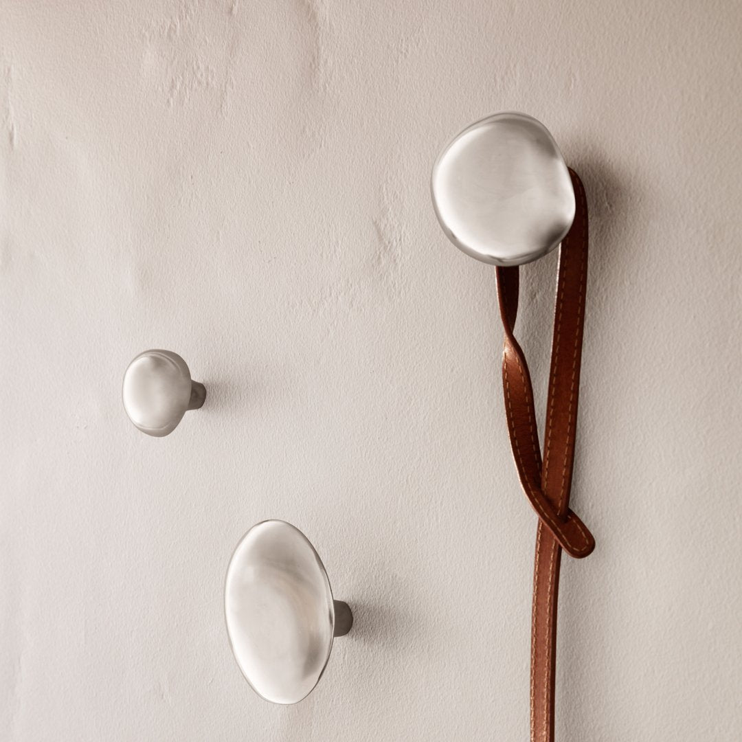 Jewelry designer Helena Rohner brings her signature aesthetic to ferm LIVING with a series of decorative objects for the home. Inspired by the dome-shaped mushroom – a little porcini or a classic champignon – this practical hook is sculpted from solid brass with a reflective finish. Originally formed by hand, it brings a human touch to interiors. Use it in the kitchen, hallway, bathroom or bedroom to hang towels or clothes. Engraved with the initials of both Helena Rohner and Ferm Living, the hook comes packaged in a textile pouch.