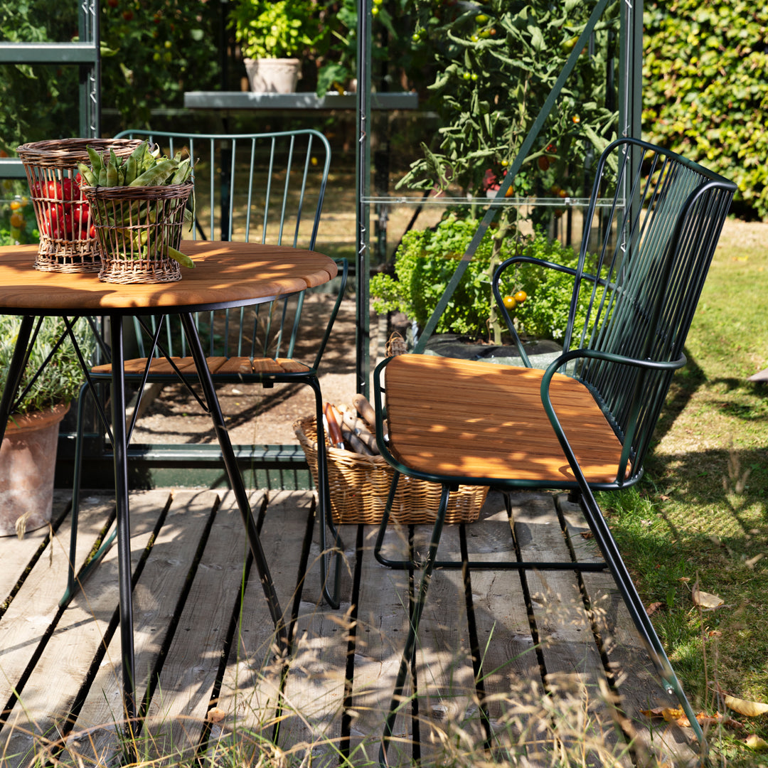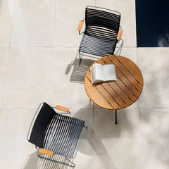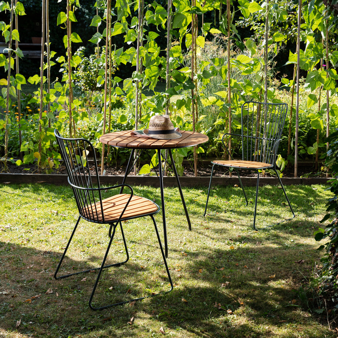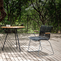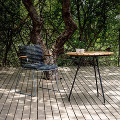 CIRCUM Cafe table in bamboo with construction in powder coated black steel tube. Makes a perfect setting together with any HOUE dining chair at the smaller terrace or balcony – or at the cafe.