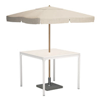 A dining table with hole for umbrella with table top in aluminum. The special developed extruded profile in the table frame makes FOUR a remarkable strong table.