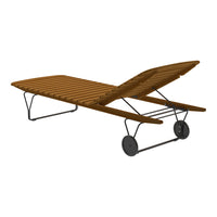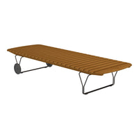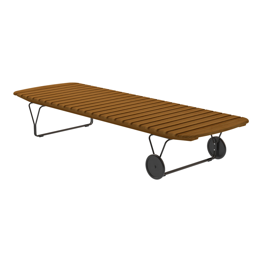 MOLO Sunbed is made in bamboo lamellas with a decorative leg construction in powder coated black metal. The surface and the soft rounded bamboo lamellas combined with the metal construction lead the thoughts towards a pier and the relaxed atmosphere by the sea.