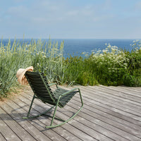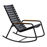 ReCLIPS Rocking chairs come in 4 mono colors with the choice of armrests in bamboo or aluminum. The aluminum frame combined with the UV protected plastic lamellas, keep the maintenance to a minimum.