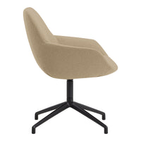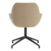 The defining feature of this model is the combination of supportive armrests with the dynamic swivel base in black powder-coated aluminum and steel. This pairing creates a chair that offers both freedom of movement and proper arm positioning—ideal for extended dining scenarios, conference settings, or hospitality environments where comfort drives engagement.