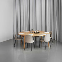In the design of the Slice collection, attention has been heaped on the details and proportions, giving Slice a solid expression and a visual lightness. Where the original Slice table has openings between the boards of the table top, Slice vol. 2 has an entirely smooth top, which gives a calm appearance and a practical, even surface.