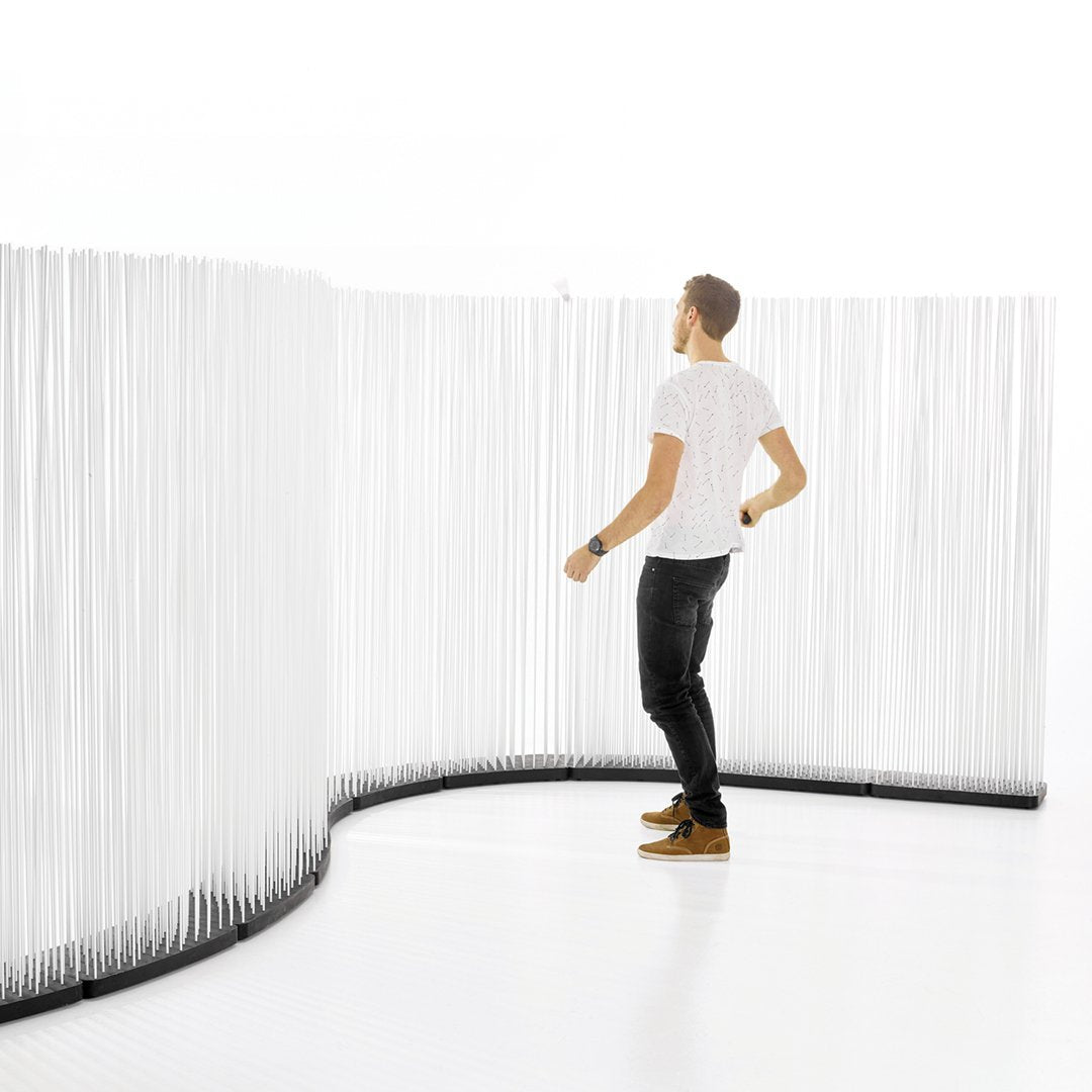 Indoors, the Sticks room divider can be used to adapt the look of a room or office arrangement to your own taste. The Sticks room divider lets you create your own space over and over again. You can also choose the type and number of rods you use to create various degrees of transparency, colour combinations or differences in length.