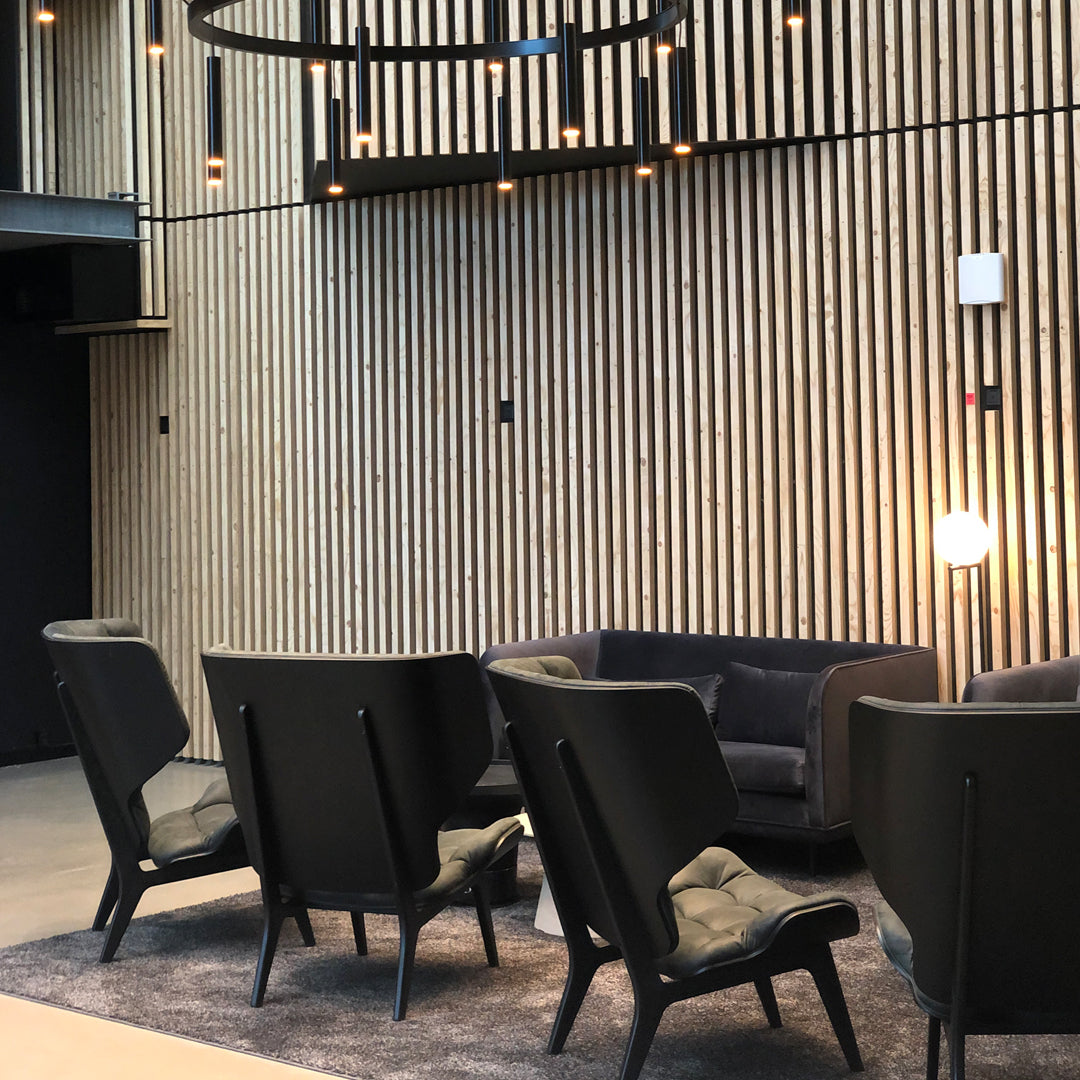 The Mammoth chair is designed by the Danish designer Rune Krøjgaard and Norwegian designer Knut Bendik Humlevik, the Mammoth Chair is a welcoming modern wing chair. The wings extend outwards from the back of the seat, creating a pleasant homelike feeling. Rune’s passion for shapes and specific manufacturing techniques coupled with Knut’s pursuit to create stylish yet functional furniture manifest themselves in the Mammoth Chair. The seat and back are formed from the same compression mold, giving the chair its signature clean minimalistic look. The high back, hugging wings and fluffy upholstery provide superior comfort and sense of privacy, whether relaxing at home or lounging with others.