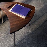 Slim and shapely, Hvidt & Molgaard's Pinwheel HM7 was first produced in 1953 and is an unusual piece. Named after the children's toy, where a wheel of paper spins around an axle, it draws inspiration from this playful example of geometric design. As such, Pinwheel is composed of six smaller tables that are purchased individually. Slot them together, however, and they cleverly form one shield-shaped piece.