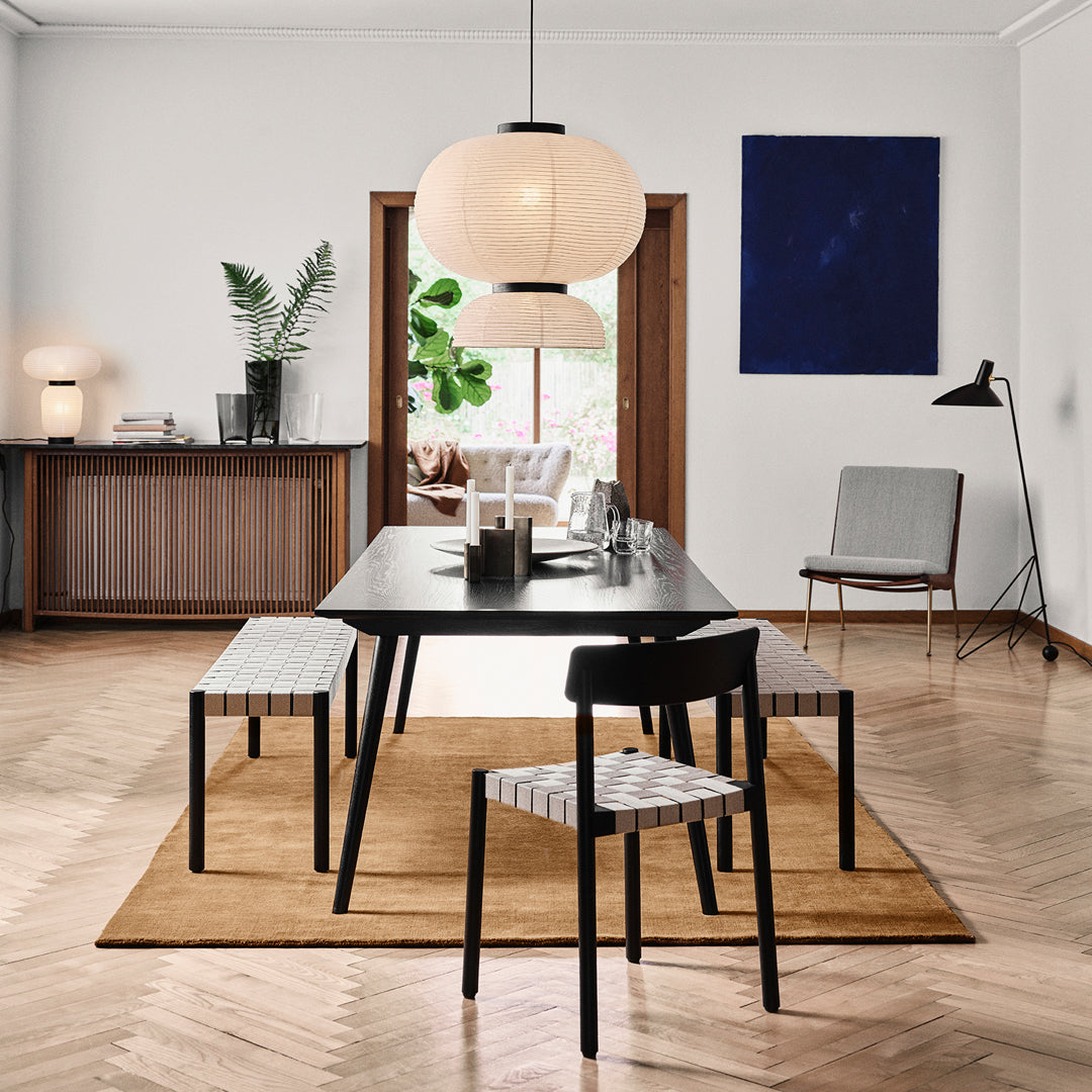 A floor lamp built from lacquered steel, the Tripod strikes a delicate balance between the stark simplicity of its design and the softness injected by the curved edges of its base. For easy articulation and a more precise light, a swivel joint has been developed – a feature now seen across the entire Tripod range. Alongside this, the introduction of a new finish, white with brass details, accentuates the graceful proportions of the original design.