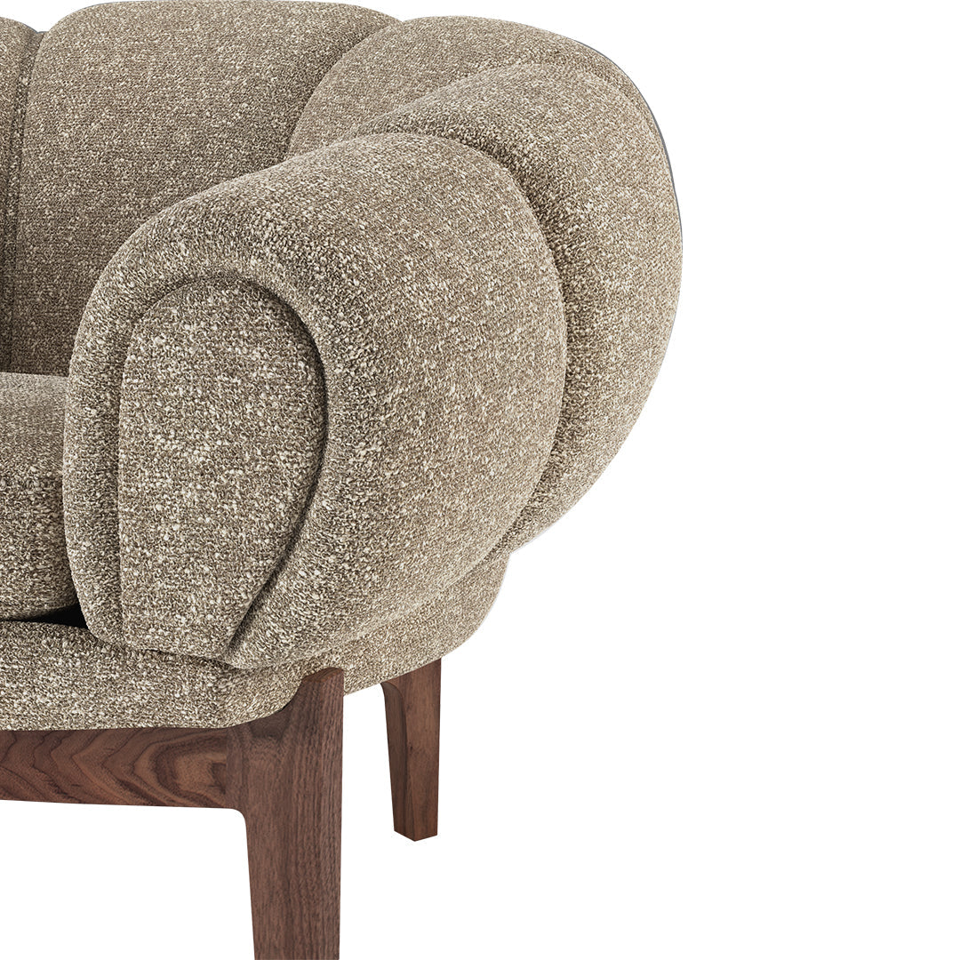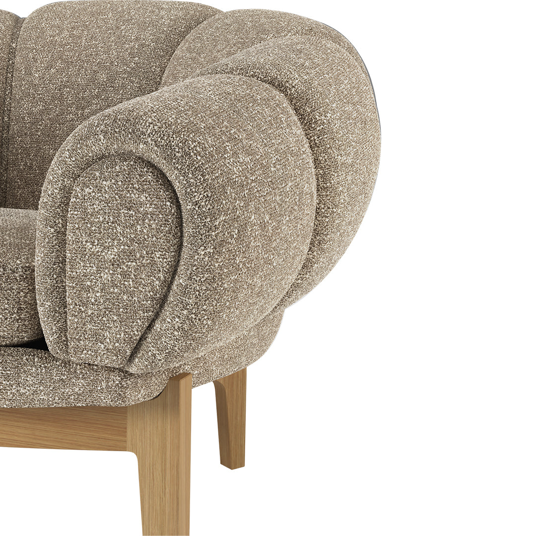 The Croissant Sofa and Lounge Chair represent an elegant and playful take on the traditional typology of the Chesterfield sofa and club chair. Wikkelso believed that a chair was not just for sitting upright, but that it should be comfortable no matter the angle at which you sit – or even lie down. He redefined these classic pieces for a more relaxed audience emerging in the optimism of the 1960s.