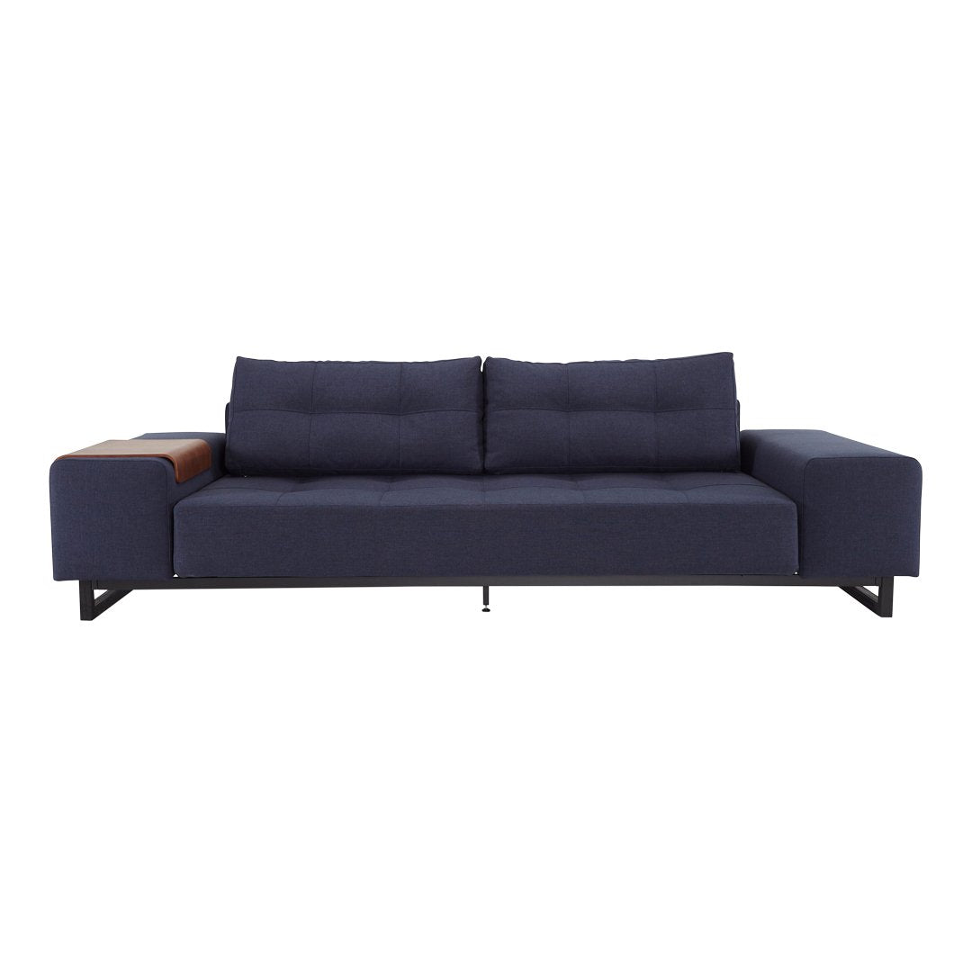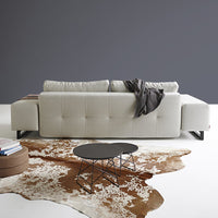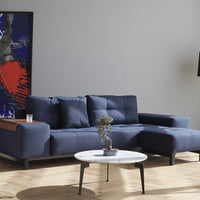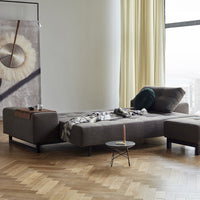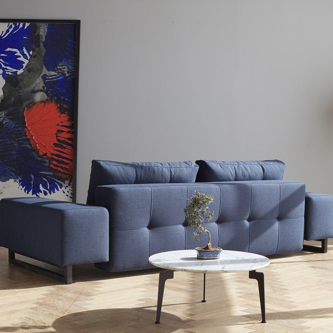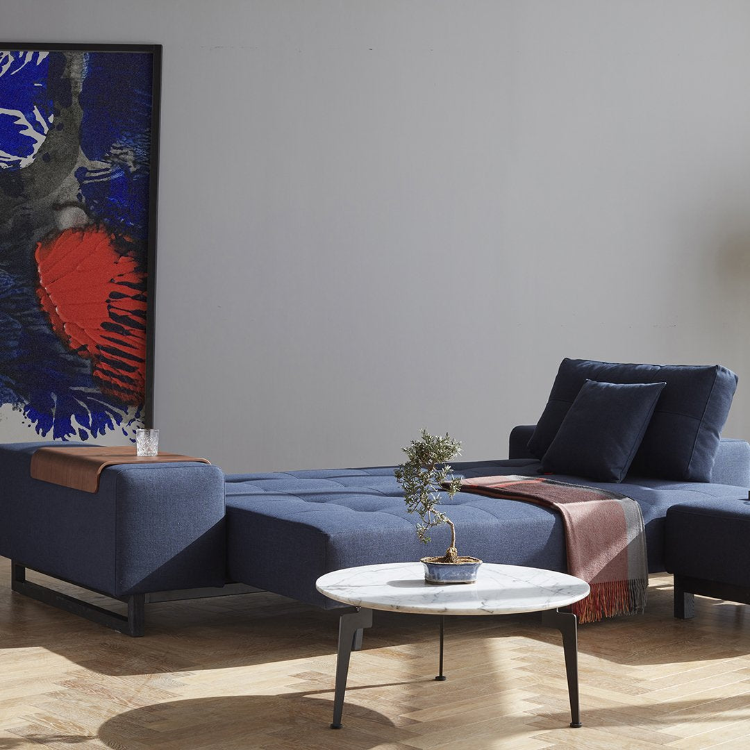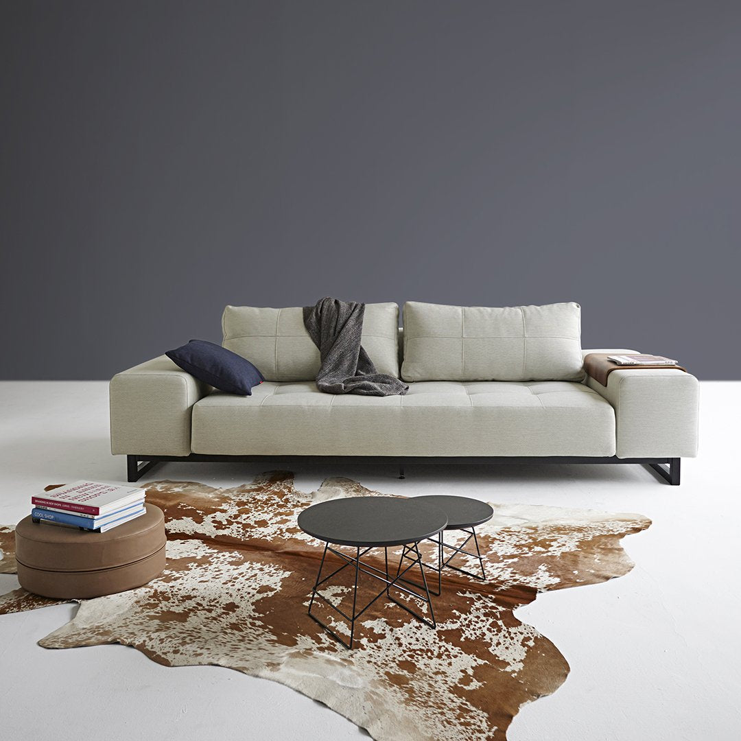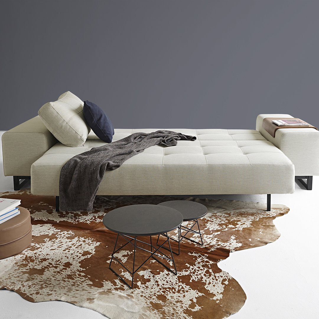 The design of the Grand Deluxe Excess Lounger stands majestically as a sofa bed tour de force. An imposing display of fusion between contemporary design and multifunction. The grandness of the armrests give the sofa a clear design reference and multifunction when combined with the integrated tray table. Easily transformed from sofa to spacious bed, the Grand Deluxe is a superior manifestation of Scandinavian multifunctional design.