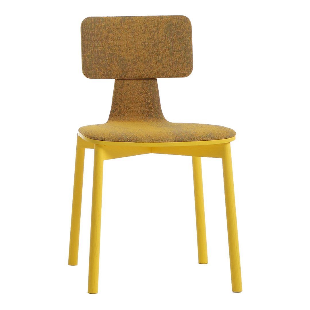 The R20 back symbolizes concepts drawn from the work of Marcel Breuer and his Cesca chair. The R30 back is a nod to Scandinavian design in the '30s and, in particular, the 69 chair by Alvar Aalto. The R40 variant represents the organic design of the '40s, '50s and '60s and celebrates the LCW chairs designed by Charles Eames. The postmodern influences of the '70s are impregnated in the R70, inspired by designs like those of Synthesis45 by Ettore Sottssas for Olivetti. The Silla40 combines an upholstered seat and back with ash feet and arms. The wood is available in any color from our range of ash stains, and any fabric can be chosen from our entire collection.