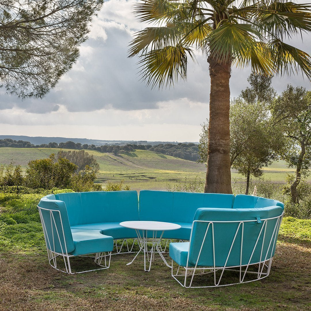 Sofa made of galvanized steel, polyester powder coated. Suitable for outdoor, indoor, and contract use.