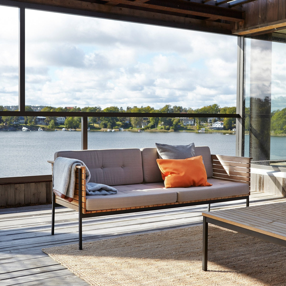 Haringe is a lounge range made in teak. Its frames feature brushed stainless steel or powder coated black, while its outdoor cushions feature buttons and decorative stitching (so they aren’t waterproof but they are beautiful). Products with cushions are in Sunbrella fabrics or artificial leather for outdoor use.