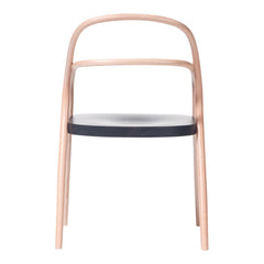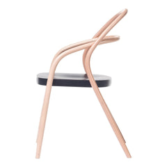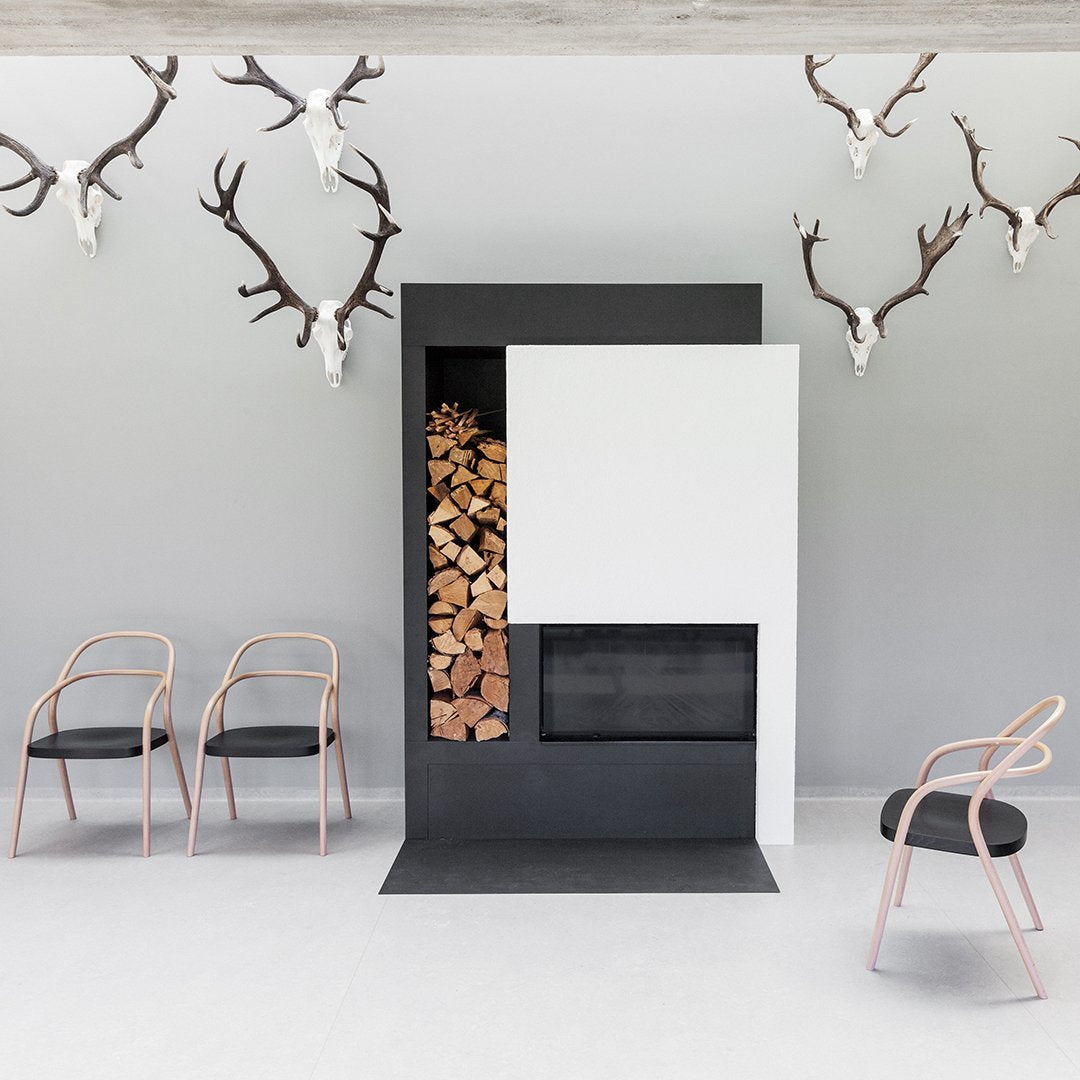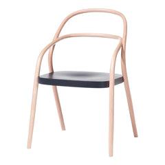 This minimalist and highly elaborate chair is a re-design of the classic model No. 14. The designer divided its six pieces by two and 002 emerged – a chair made from only three pieces. Two of them – the manually processed bends – are identical and form legs, backrest and armrests all in one.