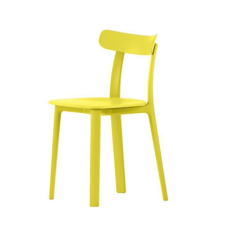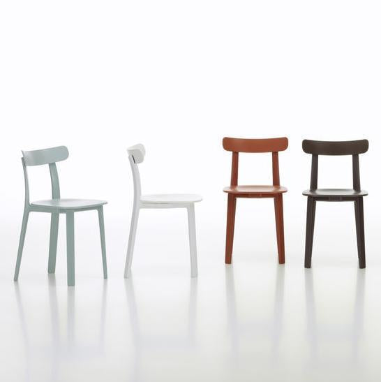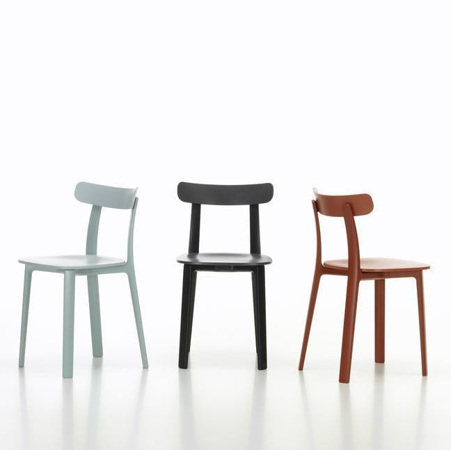 The compact All Plastic Chair by Jasper Morrison, whose form is reminiscent of classic wooden chairs, combines great stability with excellent comfort: the backrest flexes gently in response to the sitter's movements. Available in a selection of two-tone colours, this robust chair is suited for a wide range of applications both indoors and out.