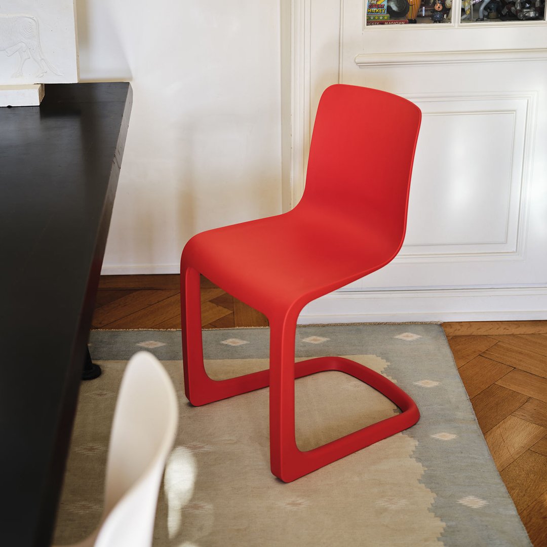 Vitra and Jasper Morrison have successfully translated the basic principle and distinctive comfort of the classic cantilever chair into an ergonomic model made of 100% recyclable polypropylene: EVO-C.