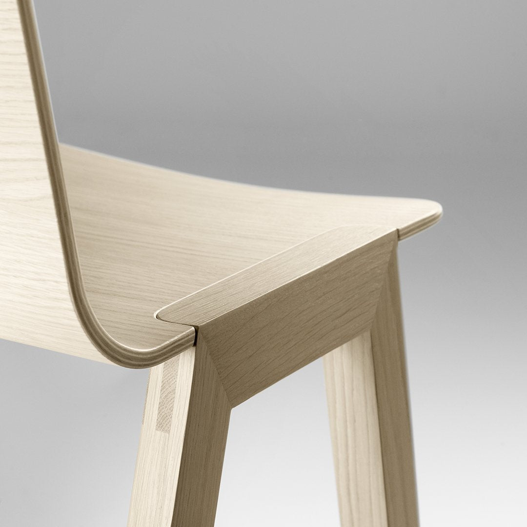 The Heldu chair has a solid oak construction. Finish is available for the shell in wooden oak.