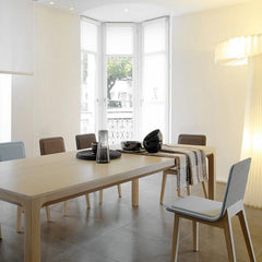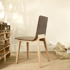 The LAIA chairs have a wide array of possible combinations when it comes to materials: the wooden legs can be finished in natural oak or stained and the seat can be in any of our fabrics or leathers.