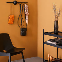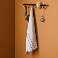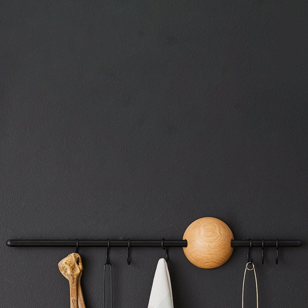 The versatility of Hoop also shows in the functionality. Together with the minimalistic design, the rack can be used for multiple purposes. Place it in small spaces like kitchens to hang tea towels and kitchen utensils or the hallway to store and display bags together with jackets.